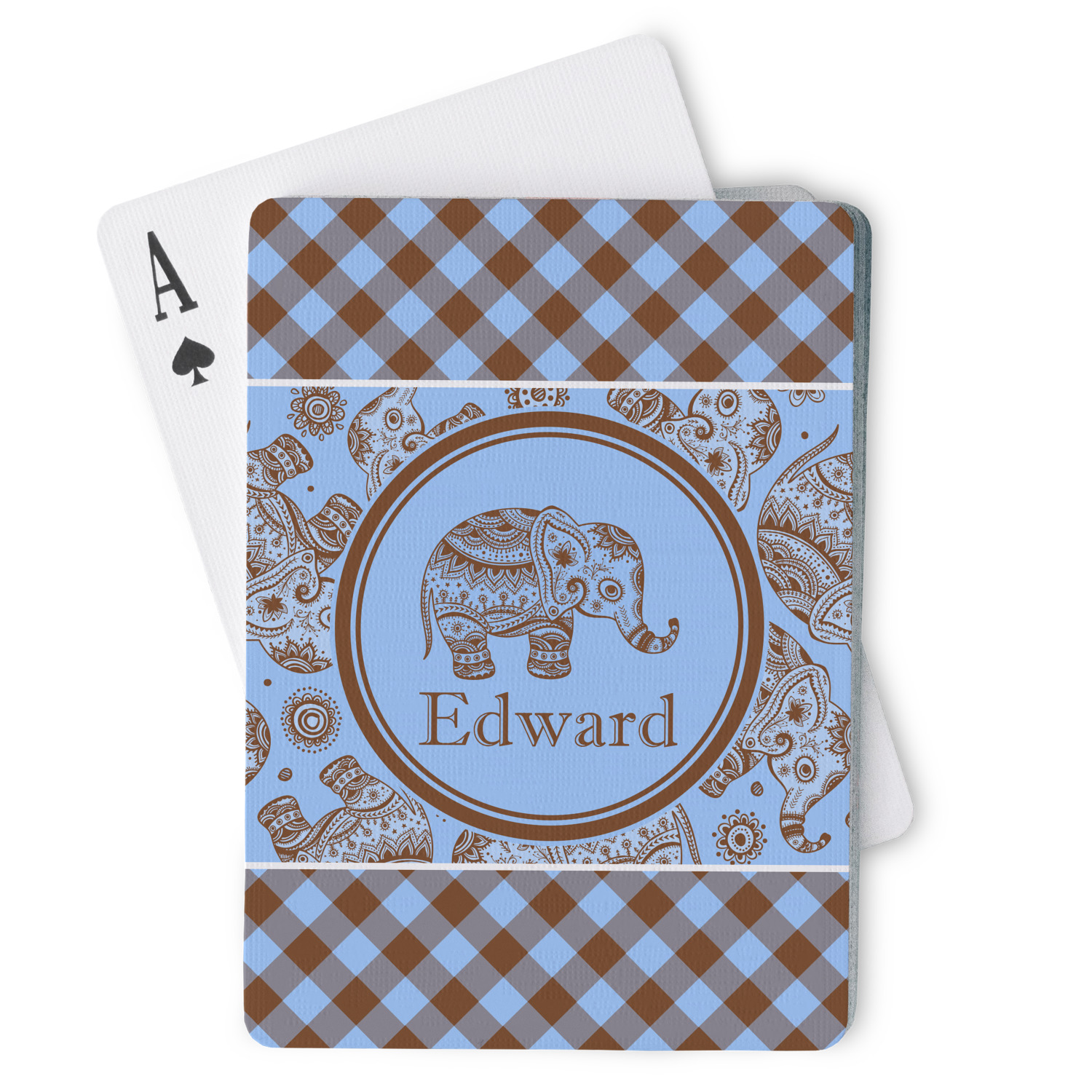 Here at YouCustomizeIt, you can customize your playing cards by uploading your own design, photo, or logo. We have design templates that you can customize by changing the patterns, colors, graphics, personalization styles, etc. - using our free for you to use in our design elements library.