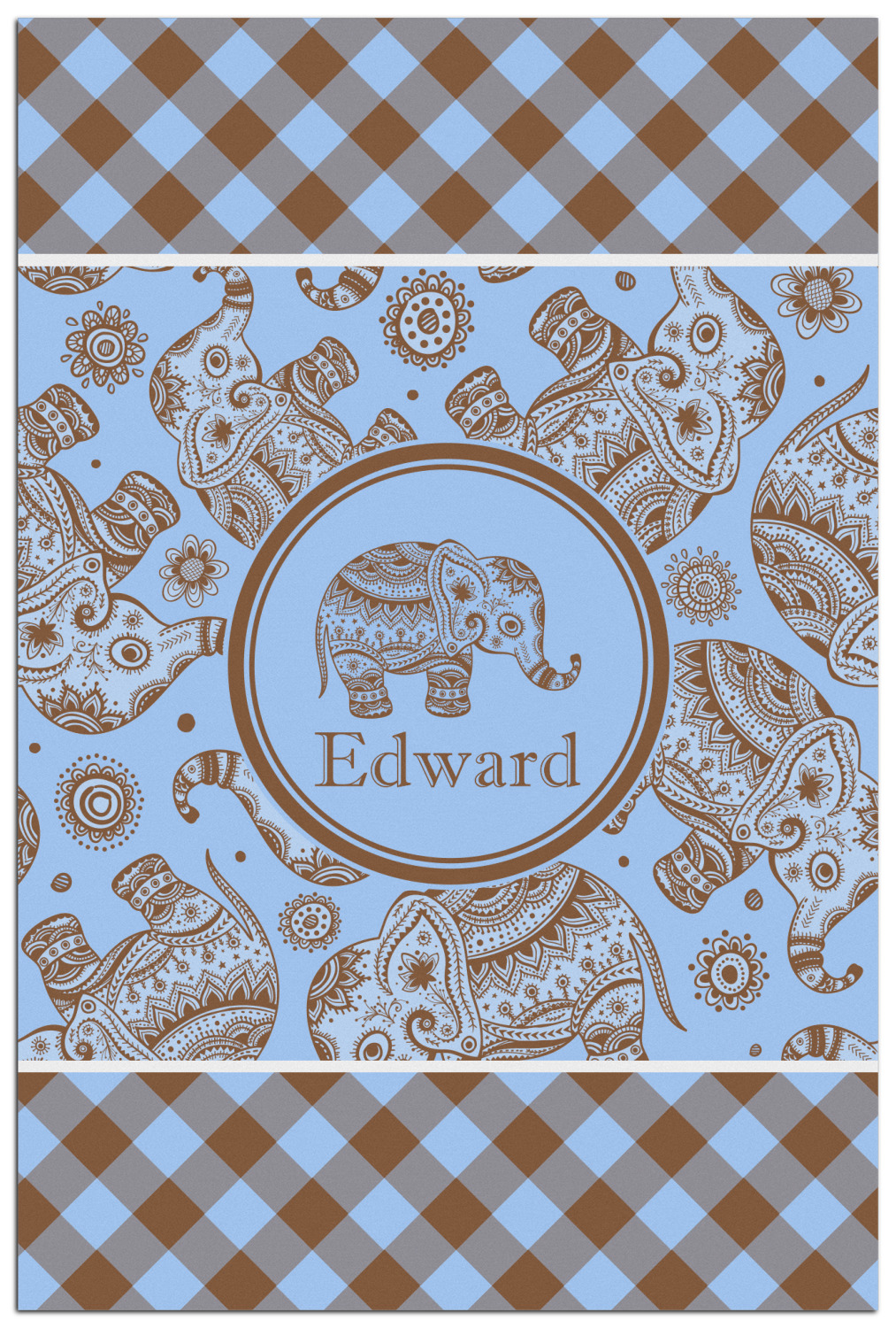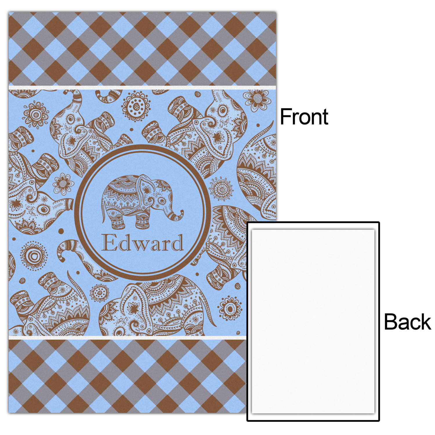 This design with gingham and baby elephants is elegant and versatile. We chose to use baby blue and brown for our colors, however the design is fully recolor-able; so you can change the both the colors to any color combination that you like.