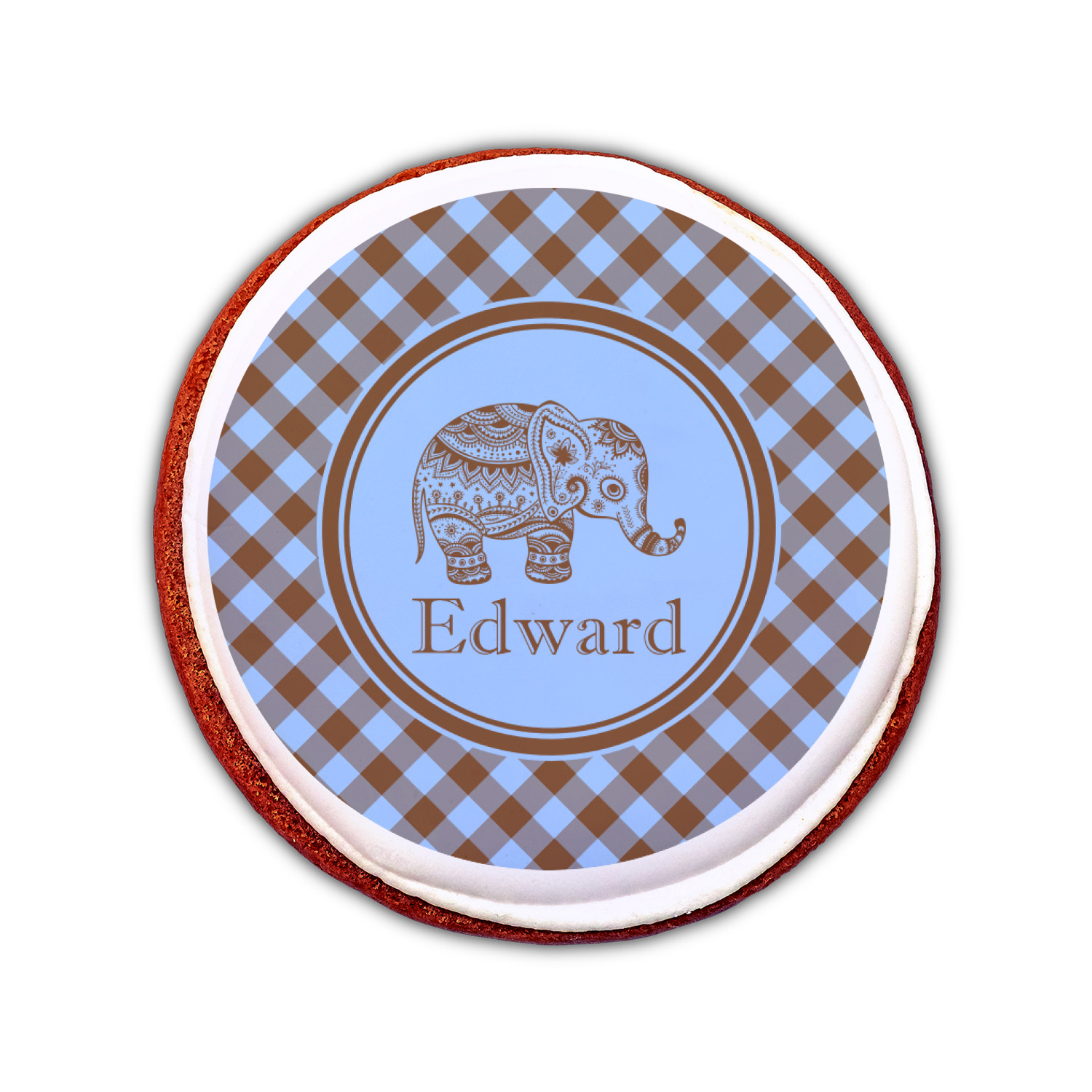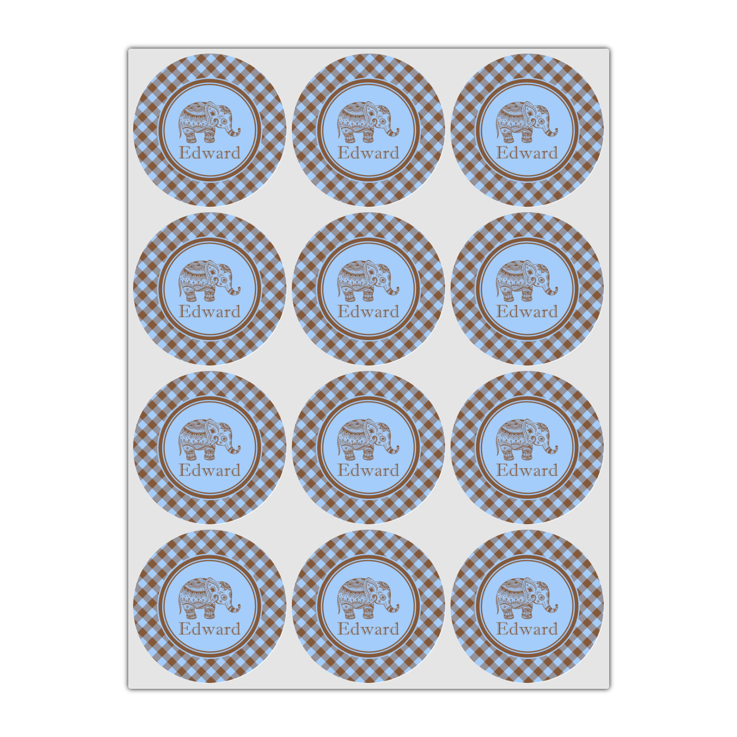 This design with gingham and baby elephants is elegant and versatile. We chose to use baby blue and brown for our colors, however the design is fully recolor-able; so you can change the both the colors to any color combination that you like.