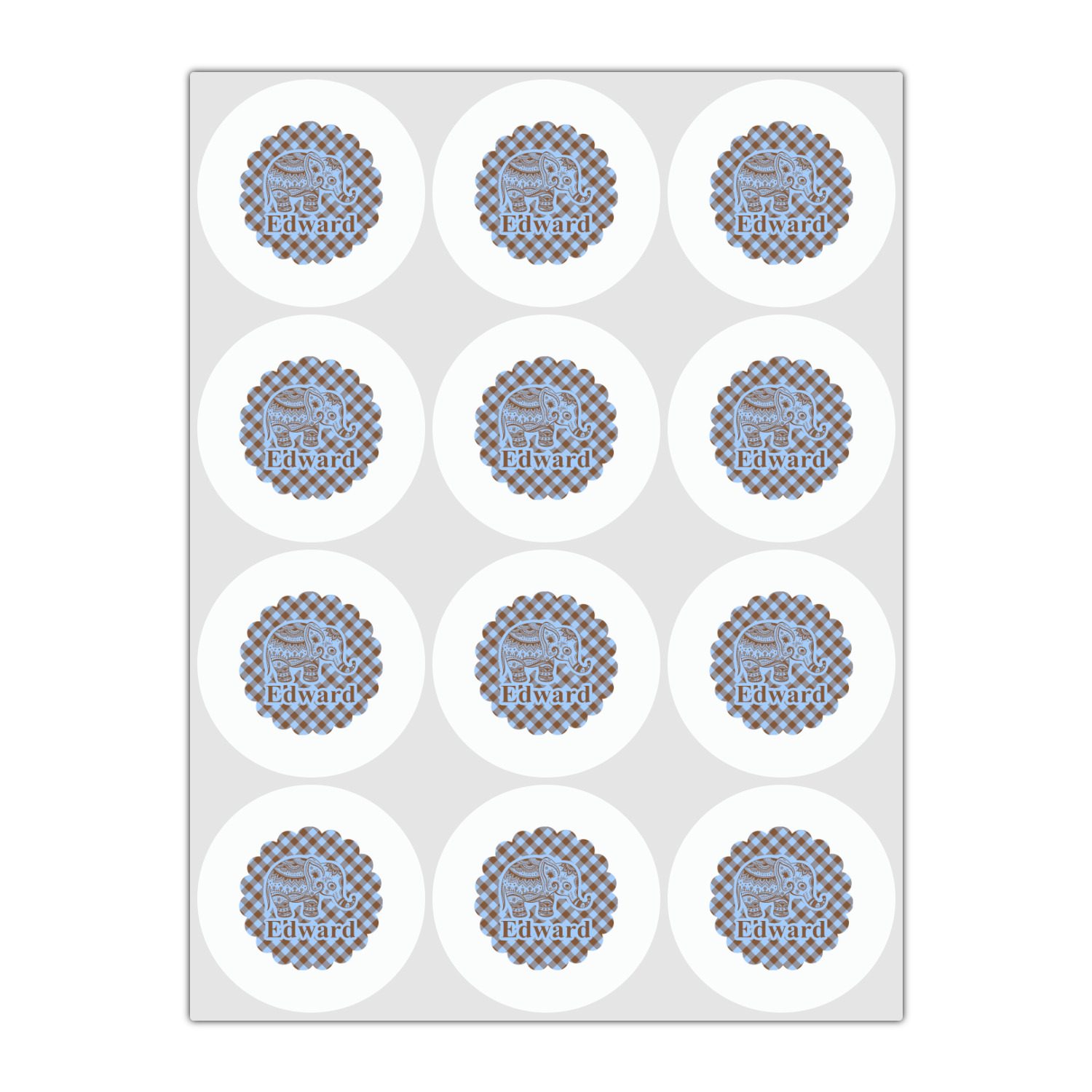 We chose the angled gingham for the top and bottom, but you have the choice of straight gingham or any other pattern in our system that you like. Our baby elephant pattern are available in 3 different styles - we chose style 2. We opted not to have a ribbon and chose a simple round label with a graphic of the elephant and the personalization below the elephant graphic.