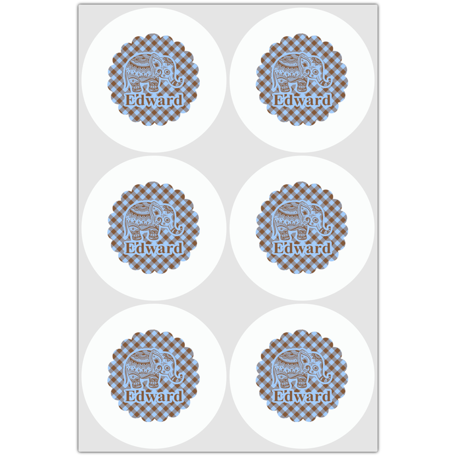 We chose the angled gingham for the top and bottom, but you have the choice of straight gingham or any other pattern in our system that you like. Our baby elephant pattern are available in 3 different styles - we chose style 2. We opted not to have a ribbon and chose a simple round label with a graphic of the elephant and the personalization below the elephant graphic.