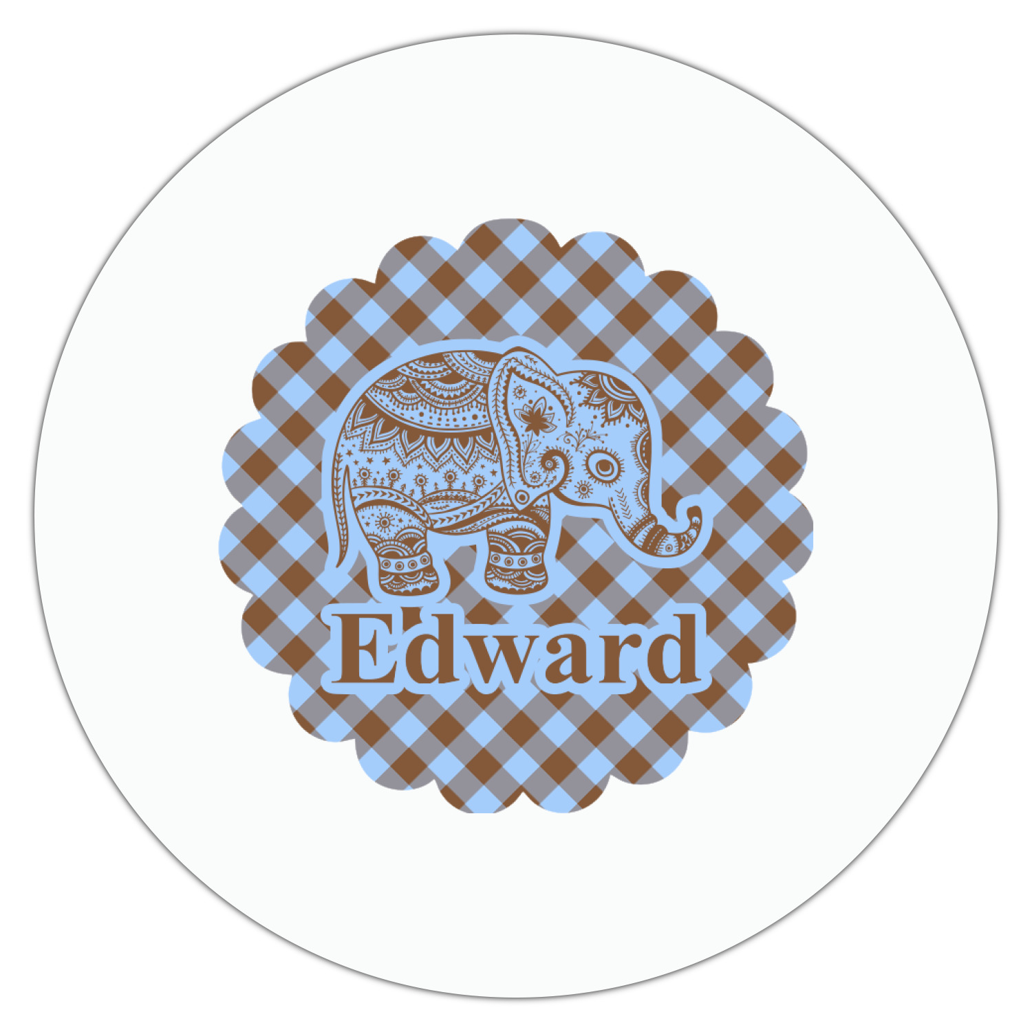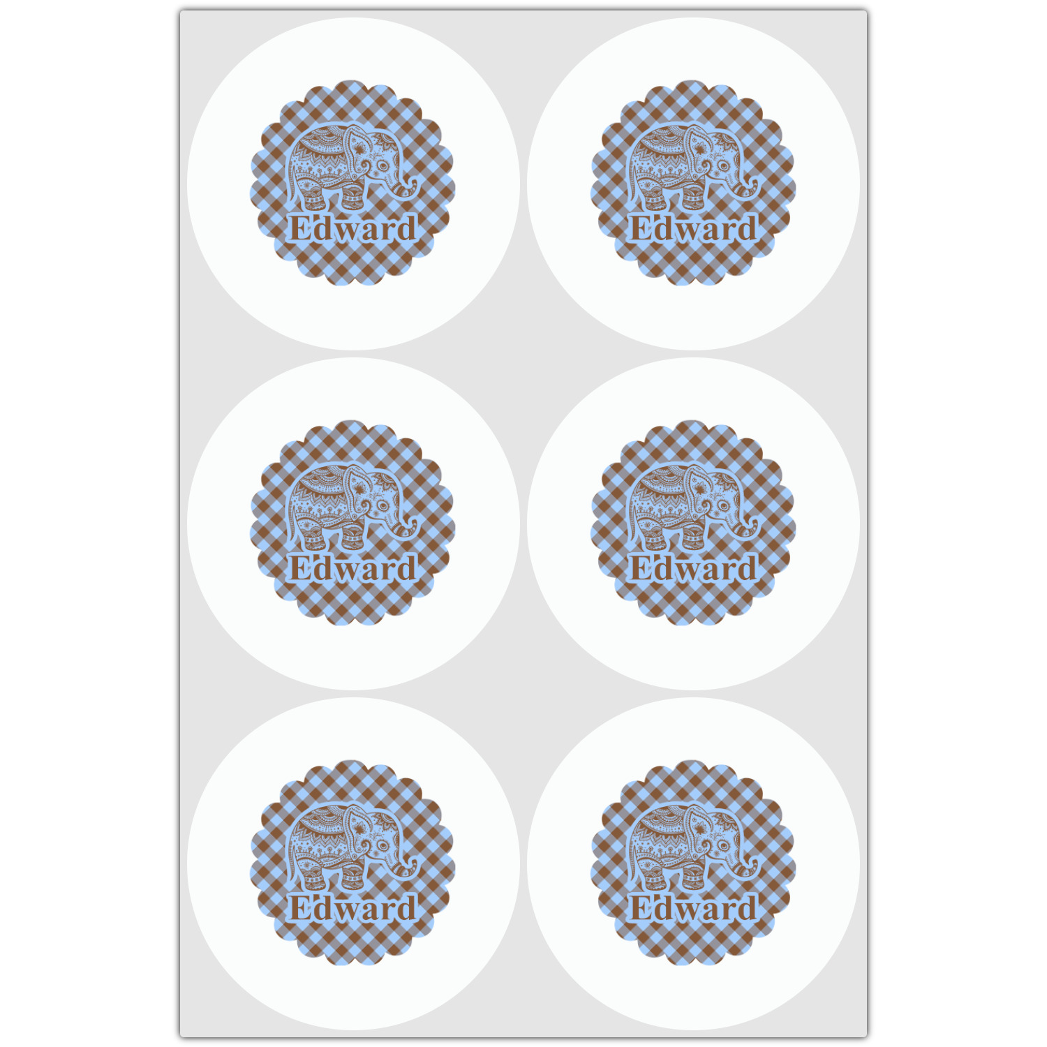 This design with gingham and baby elephants is elegant and versatile. We chose to use baby blue and brown for our colors, however the design is fully recolor-able; so you can change the both the colors to any color combination that you like.