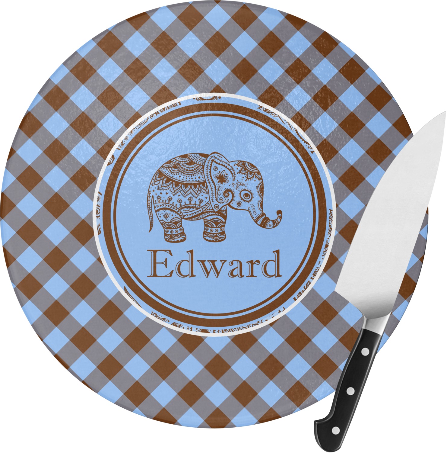 This design with gingham and baby elephants is elegant and versatile. We chose to use baby blue and brown for our colors, however the design is fully recolor-able; so you can change the both the colors to any color combination that you like.