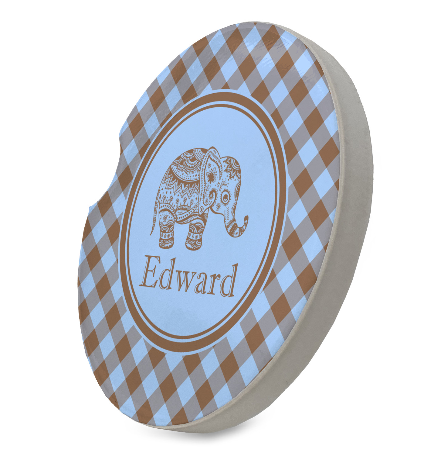 These sandstone coasters are round, robust, and feature a smoothed glossy side to exhibit your customized design. With a 2.5 inch diameter, these stone coasters will fit snugly inside most cup holders. This model also features a semi-circle shaped divot that allows for easy removal, despite the tight fit. You can purchase these car cup holder coasters in a pair, or singularly, depending on your needs.