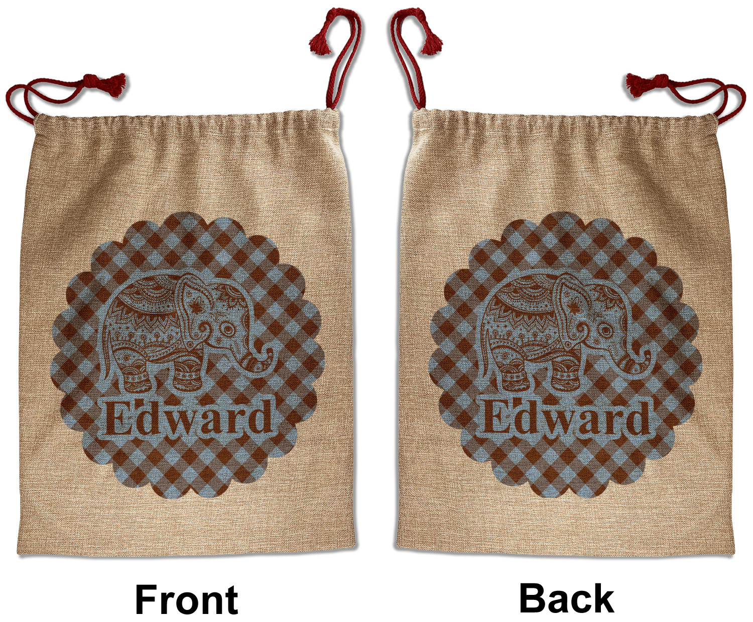 Our Santa sacks print your design on the burlap material giving it a nice rustic, natural design! The burlap material is also machine washable and wrinkle-free, so feel free to fold and store out Santa bags until the next time you need it! Secure your gifts with our red accent drawstring ties at the top of the sack so the mystery of your gift stays a surprise until Christmas day. We offer two types of printing- one side partial print or double-sided partial printing. Design and personalize your own Santa sack in time for the holidays!