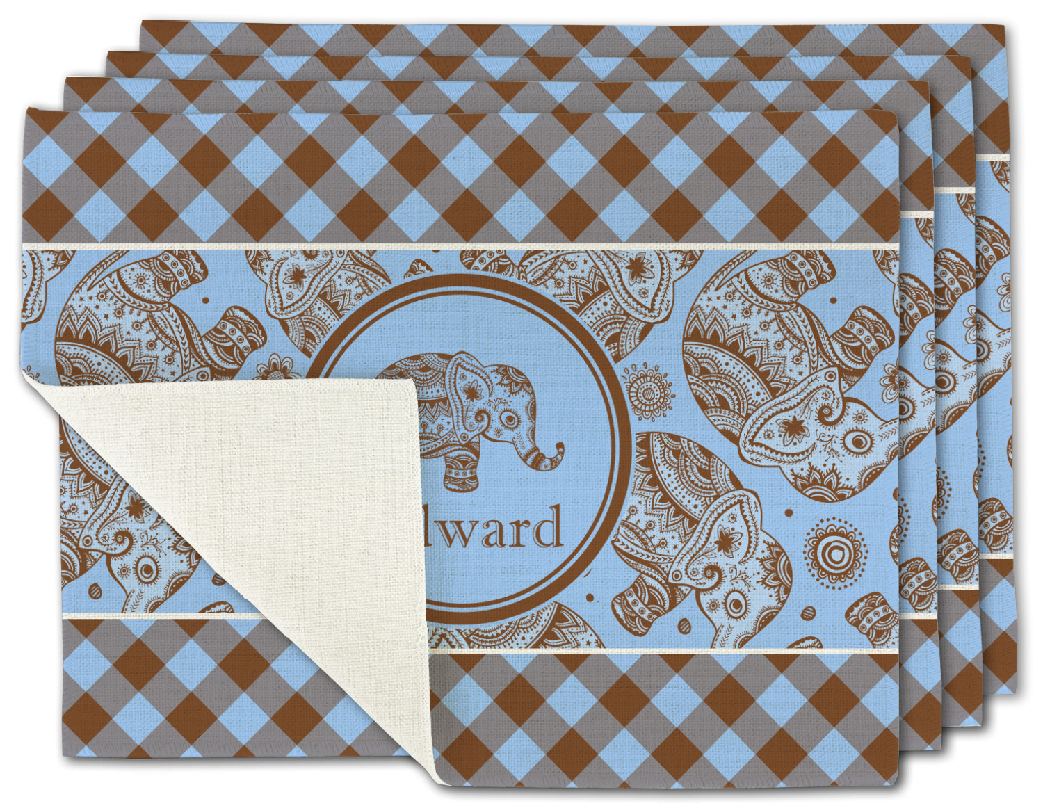 This design with gingham and baby elephants is elegant and versatile. We chose to use baby blue and brown for our colors, however the design is fully recolor-able; so you can change the both the colors to any color combination that you like.