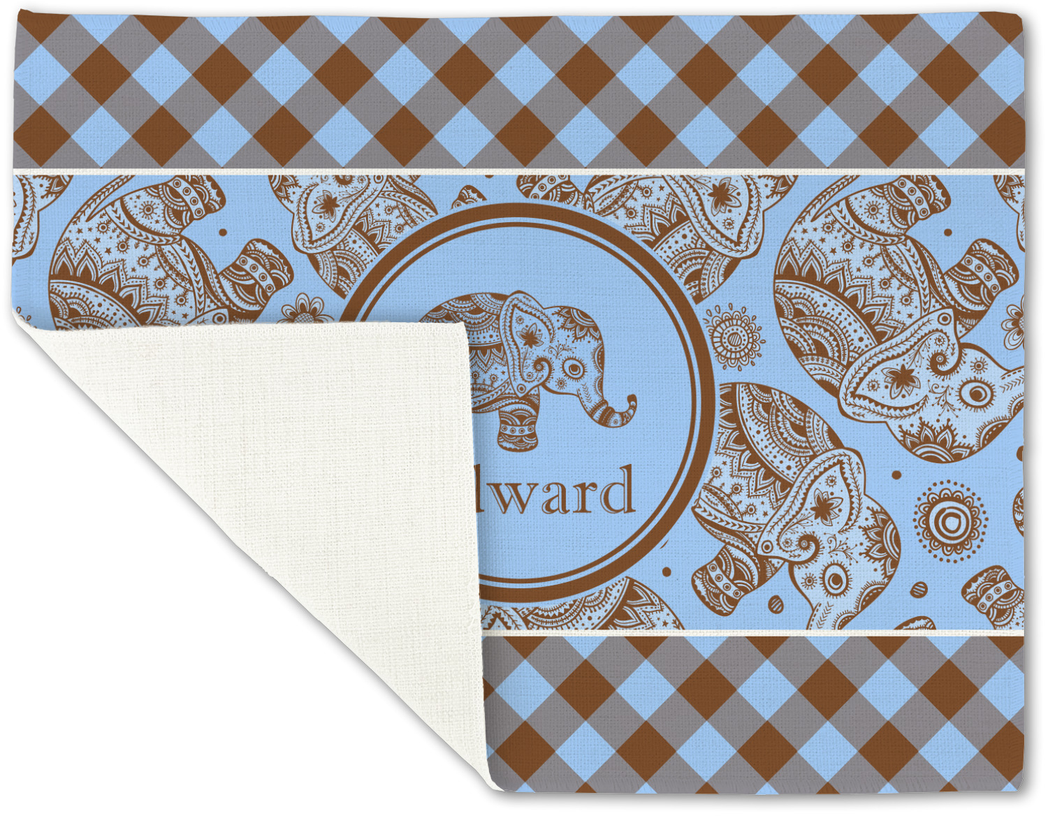 This design with gingham and baby elephants is elegant and versatile. We chose to use baby blue and brown for our colors, however the design is fully recolor-able; so you can change the both the colors to any color combination that you like.