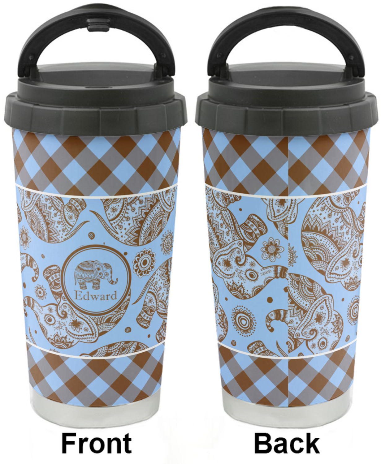 This sleek and tapered 16 oz stainless steel travel cup is a perfect fit in the hand. With the strip of visible stainless steel on the bottom, you'll be feeling classy!