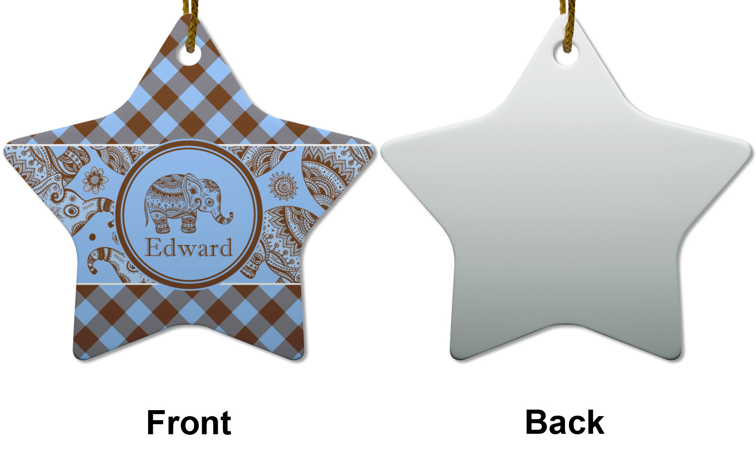 This design with gingham and baby elephants is elegant and versatile. We chose to use baby blue and brown for our colors, however the design is fully recolor-able; so you can change the both the colors to any color combination that you like.