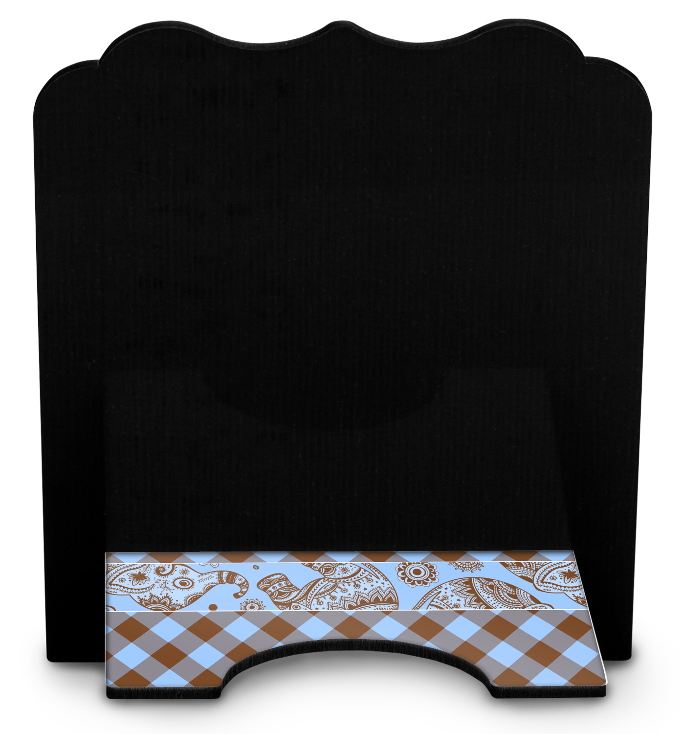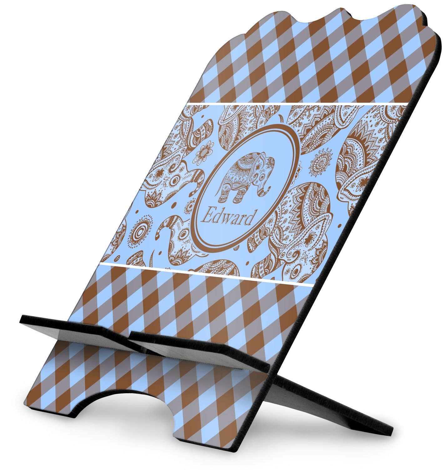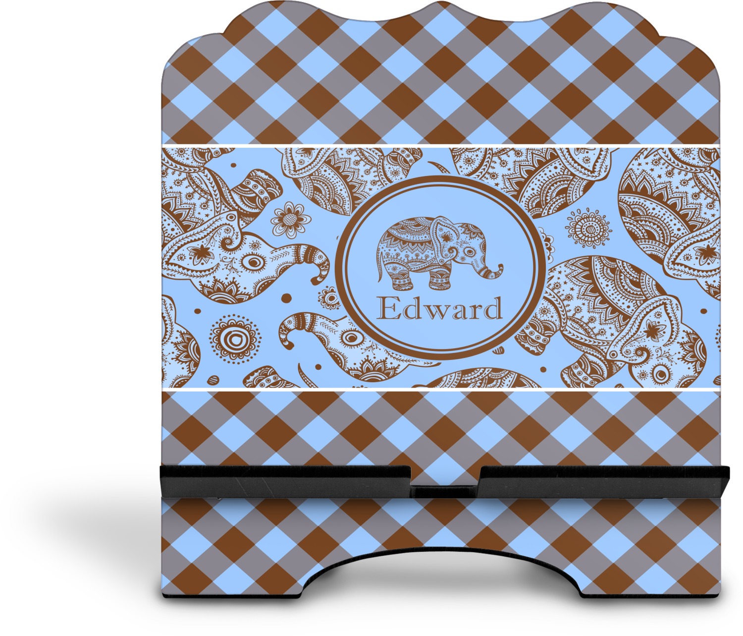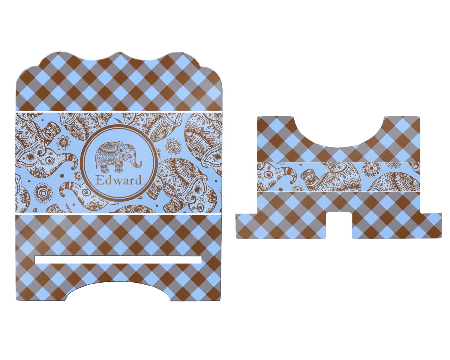 This design with gingham and baby elephants is elegant and versatile. We chose to use baby blue and brown for our colors, however the design is fully recolor-able; so you can change the both the colors to any color combination that you like.