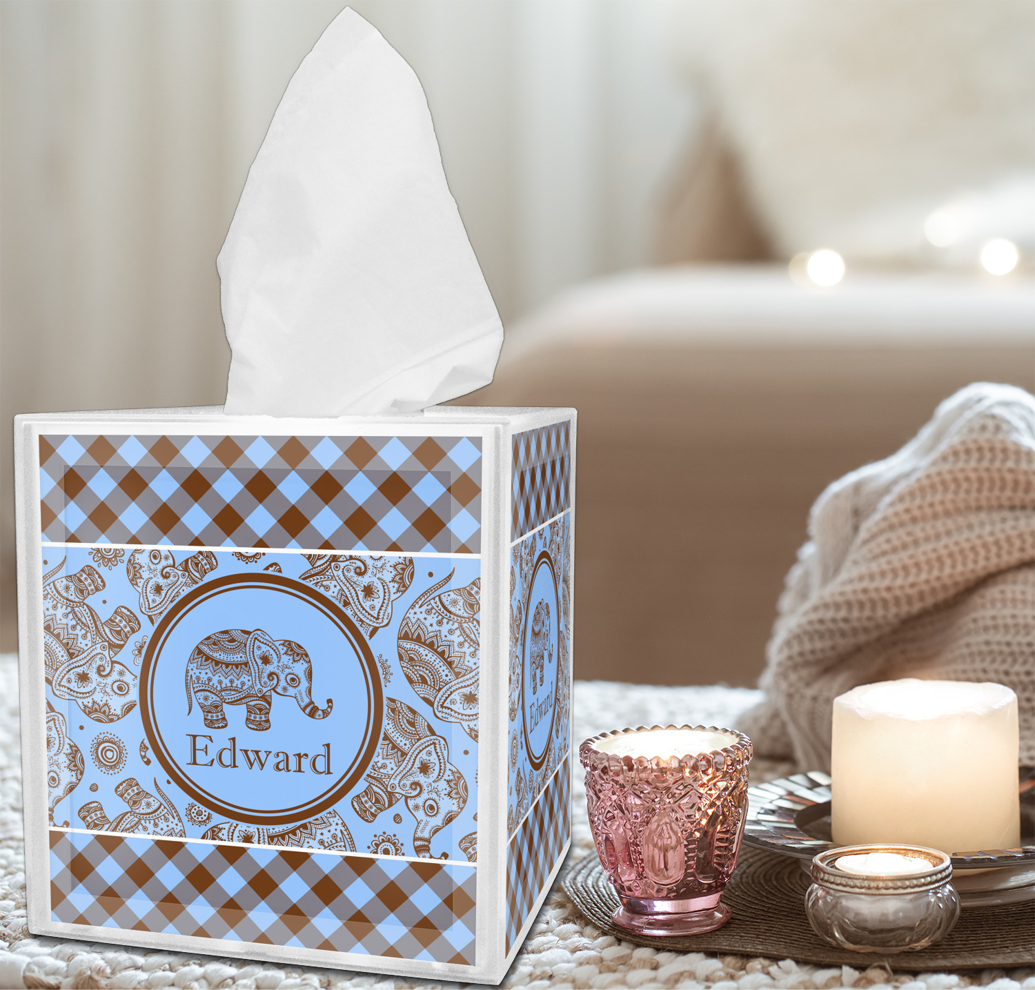 Looking to pair your brand new tissue box cover with additional accessories? We invite you to shop by room by choosing from our Bathroom, Bedroom, Home Decor categories, and more! If this tissue box is for a bathroom, consider pairing it with toothbrush holders or wastebaskets! If this is for a bedroom, try customizing a matching lampshade for it! The options for personalization are limitless.