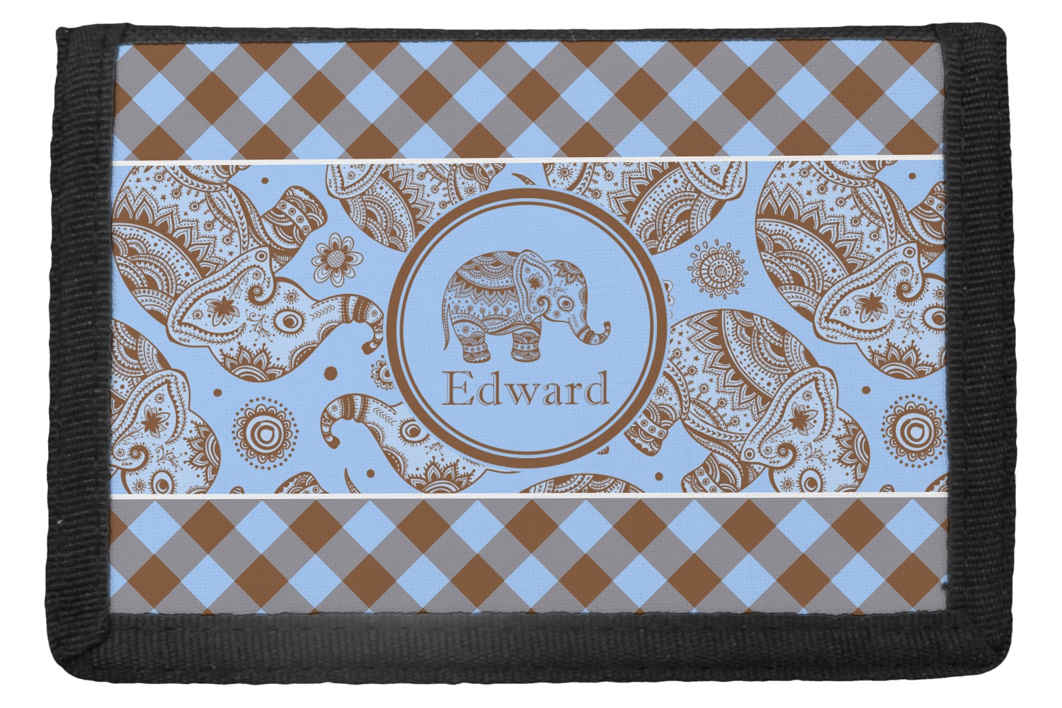 This design with gingham and baby elephants is elegant and versatile. We chose to use baby blue and brown for our colors, however the design is fully recolor-able; so you can change the both the colors to any color combination that you like.