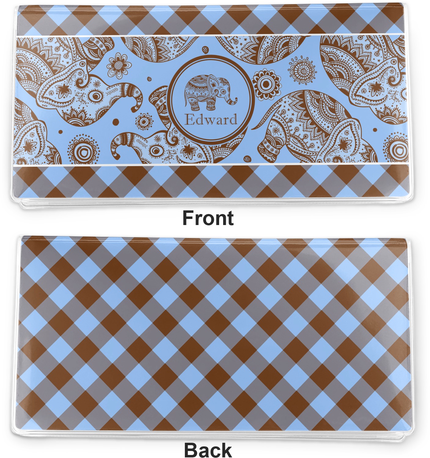 This design with gingham and baby elephants is elegant and versatile. We chose to use baby blue and brown for our colors, however the design is fully recolor-able; so you can change the both the colors to any color combination that you like.