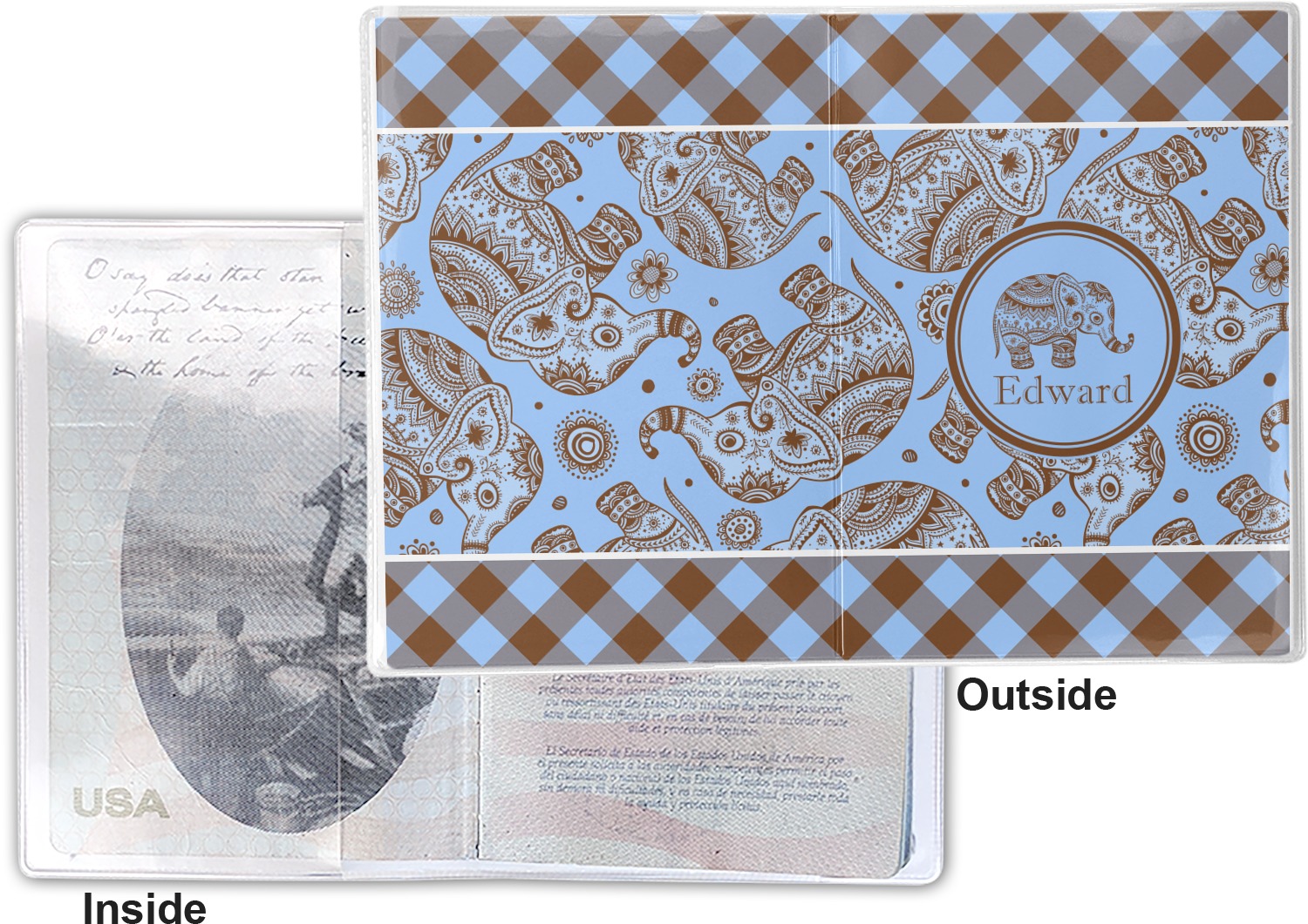 This cover is made of a sturdy clear vinyl with a personalized vinyl insert inside. There is a large and a small pocket on either side to hold the covers of your passport easily and firmly. The passport holder is approximately 7.5" x 5.25", the perfect size to snugly fit your passport. This slim cover is the perfect way to protect your passport without being one more bulky item you have to carry.