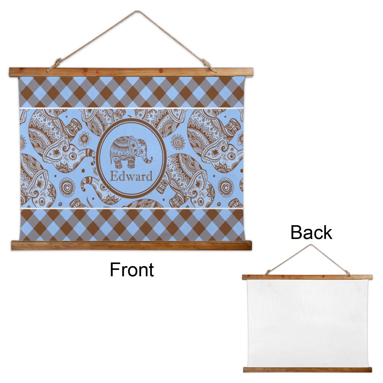 This design with gingham and baby elephants is elegant and versatile. We chose to use baby blue and brown for our colors, however the design is fully recolor-able; so you can change the both the colors to any color combination that you like.