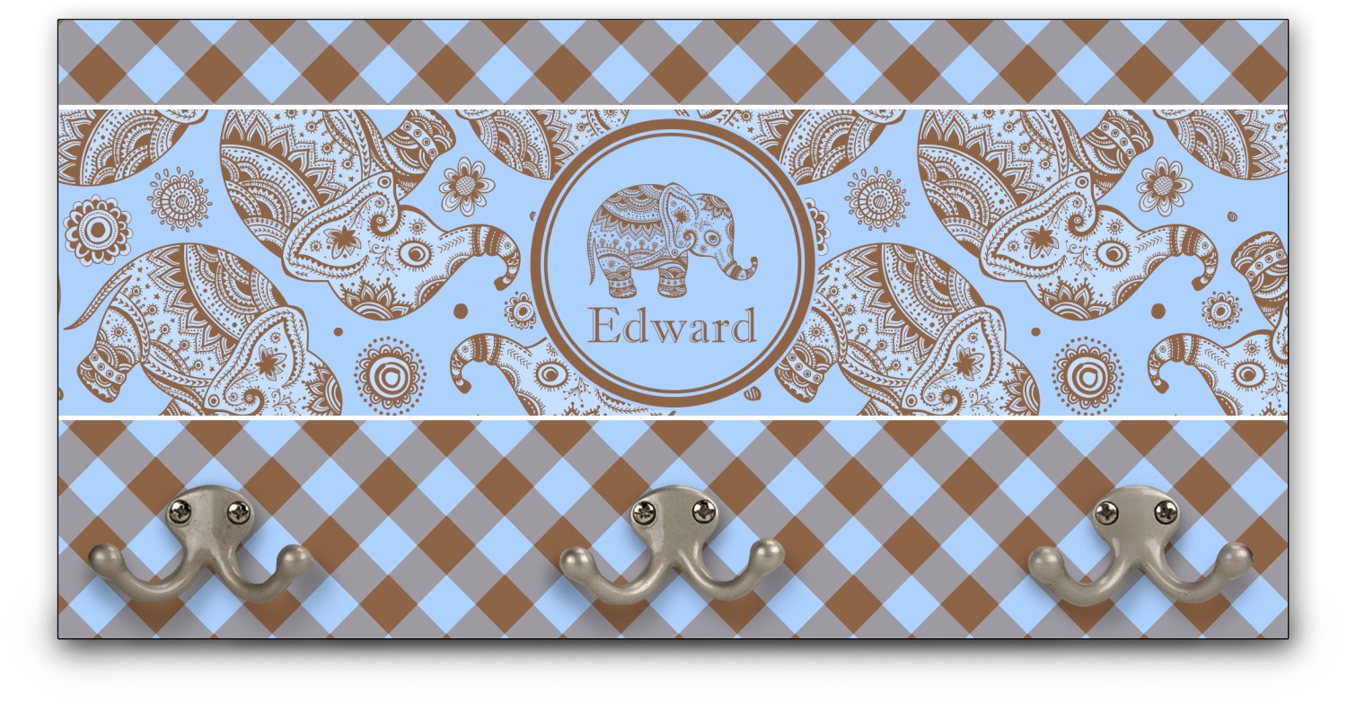 This coat rack is the perfect way to add some personality to your wall or entryway. The board is made of a strong maple that is approximately 16" x 8". The three 2-prong hooks are a sturdy metal that have three screws attaching them to the board. Your design is printed right onto the front of the board while the back and sides are a simple black.
