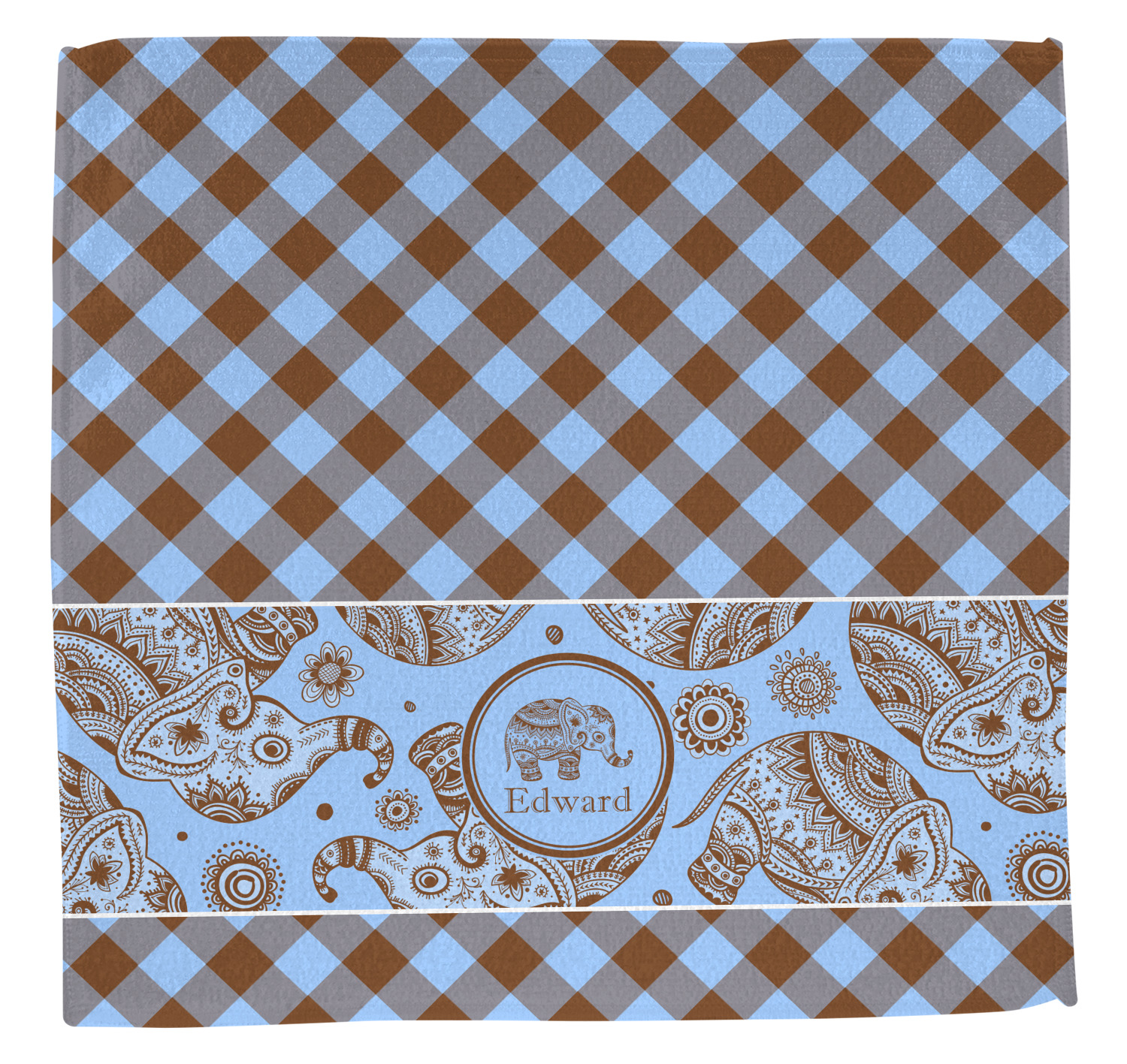 This design with gingham and baby elephants is elegant and versatile. We chose to use baby blue and brown for our colors, however the design is fully recolor-able; so you can change the both the colors to any color combination that you like.