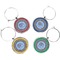 Your wine glass markers are comprised of a circular zinc plate with a 1.25 inch diameter. The zinc plate hangs from a zinc loop, which can be easily secured and removed from the stem of a wine glass. Your customized design is printed onto a 1 inch diameter insert, and then placed into the wine glass charm itself. Though sold in a set of four, you can personalize each charm individually and change the colors of the ring around your design, depending on your needs.