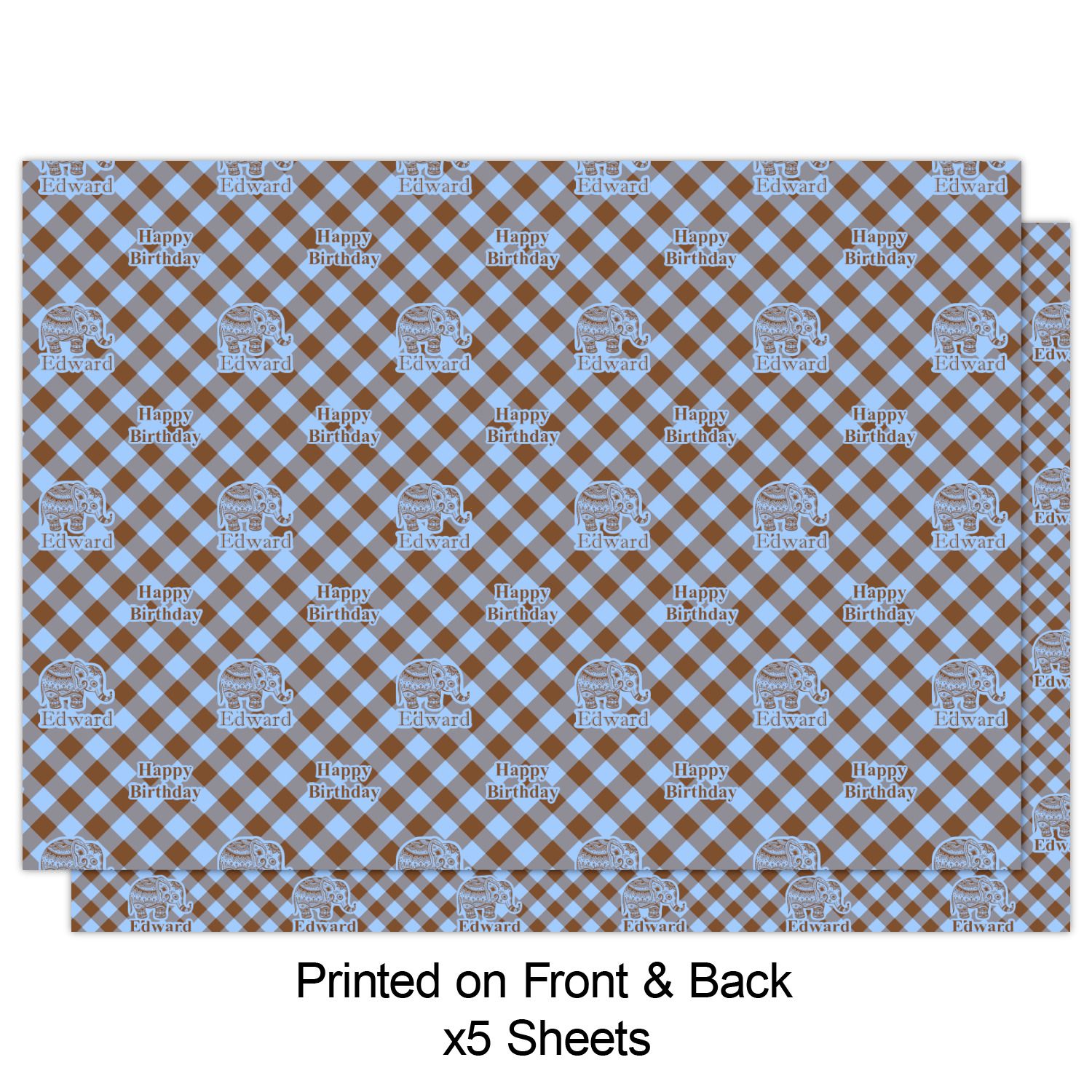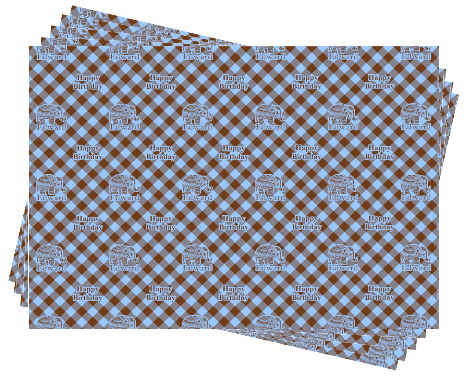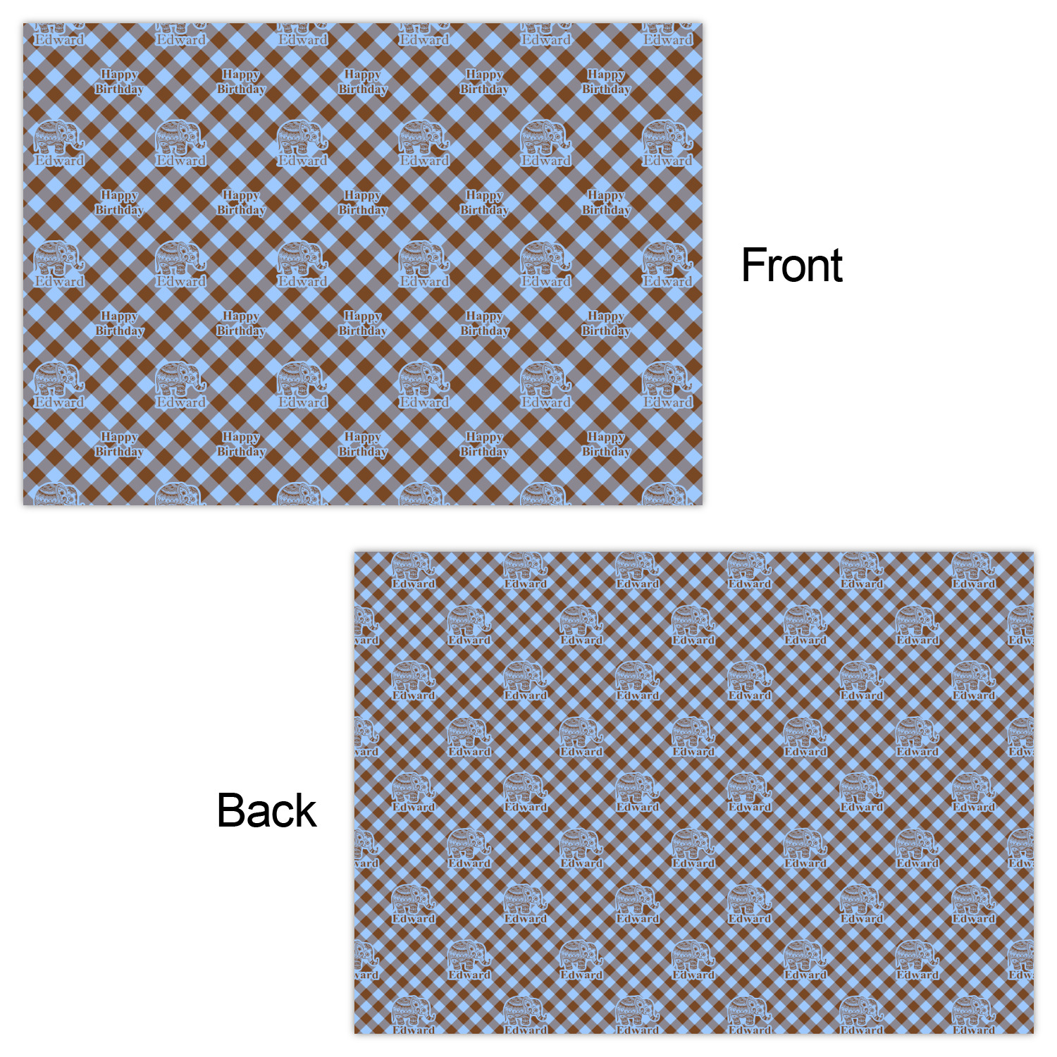 This design with gingham and baby elephants is elegant and versatile. We chose to use baby blue and brown for our colors, however the design is fully recolor-able; so you can change the both the colors to any color combination that you like.