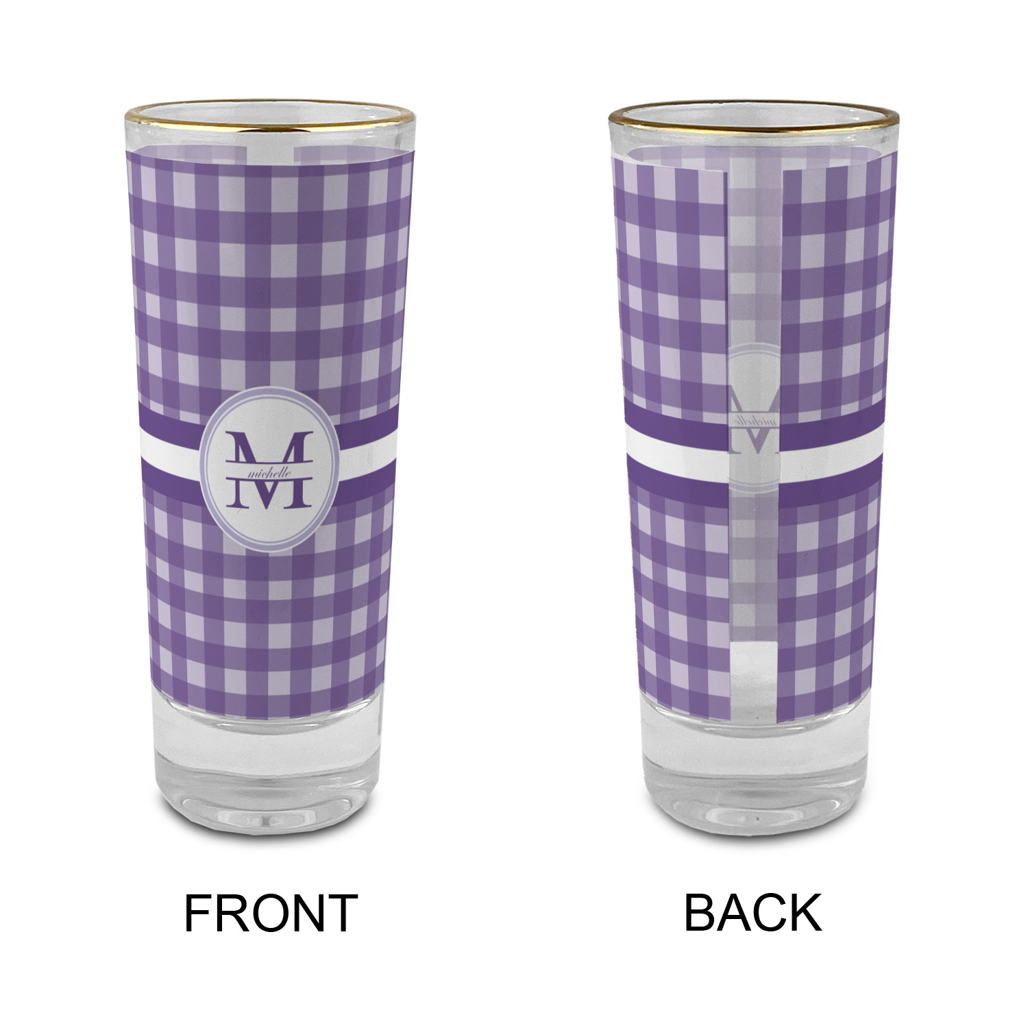 These glass shooter glasses are printed in full color with the design of your choice. These are a tall shooter 2 oz size and stand 4" tall. The print is a full wrap design to boldly display your personalization.
