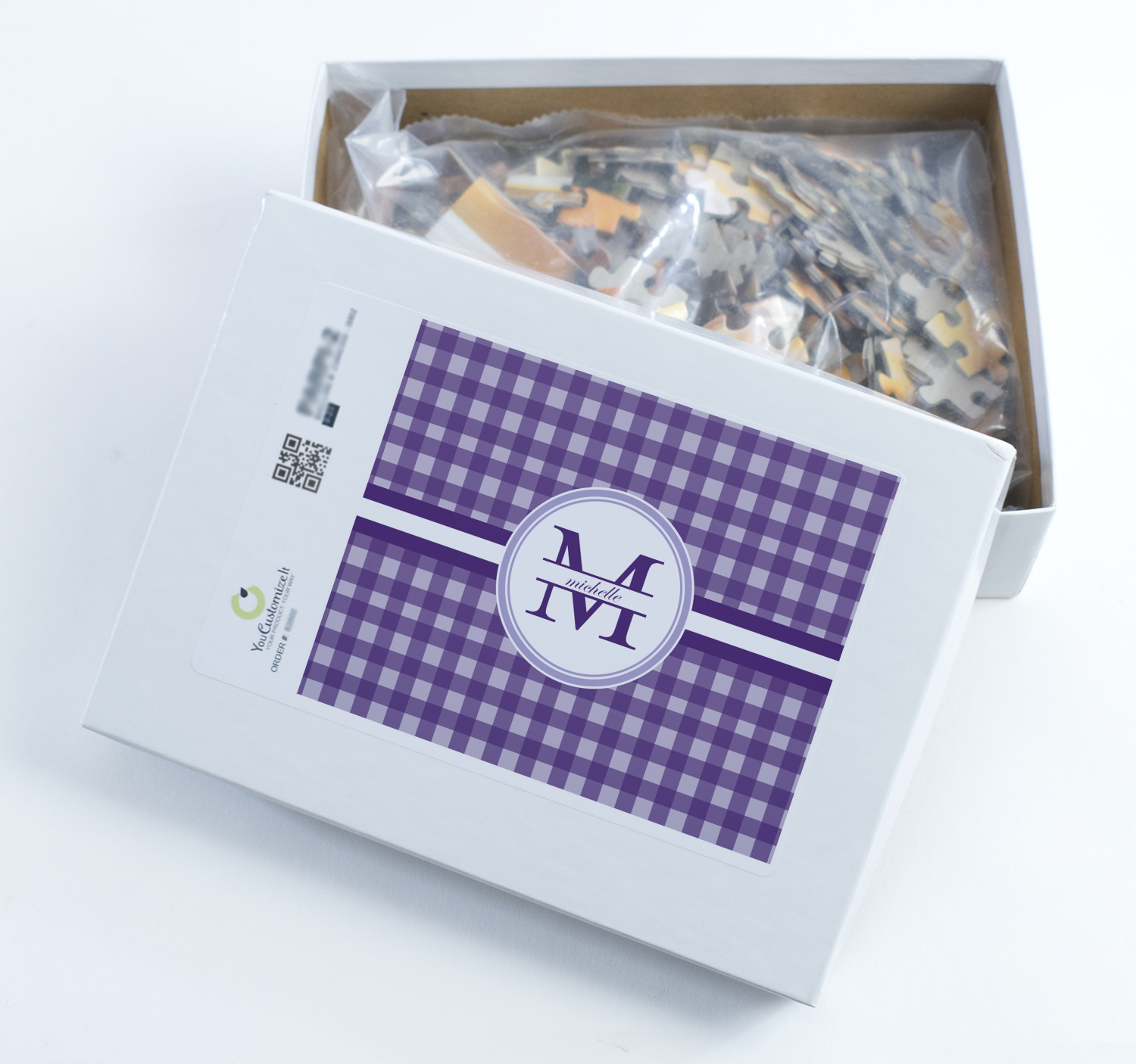 Depending on the look you are trying to achieve, you can add; a thematic pattern or background, with a photo in a frame and text or personalization to your puzzle. Basically if you can imagine it, you can design it!