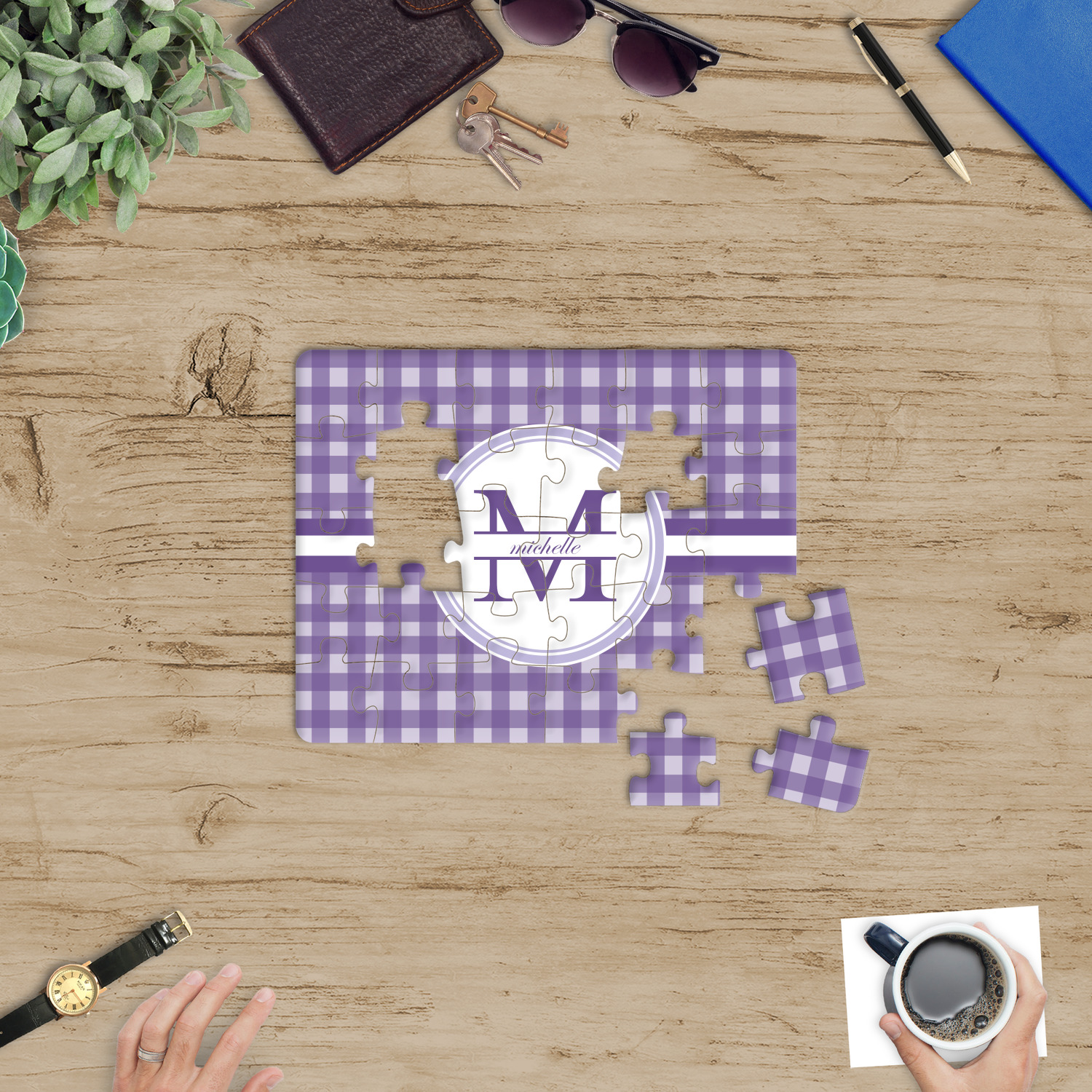 Depending on the look you are trying to achieve, you can add; a thematic pattern or background, with a photo in a frame and text or personalization to your puzzle. Basically if you can imagine it, you can design it!