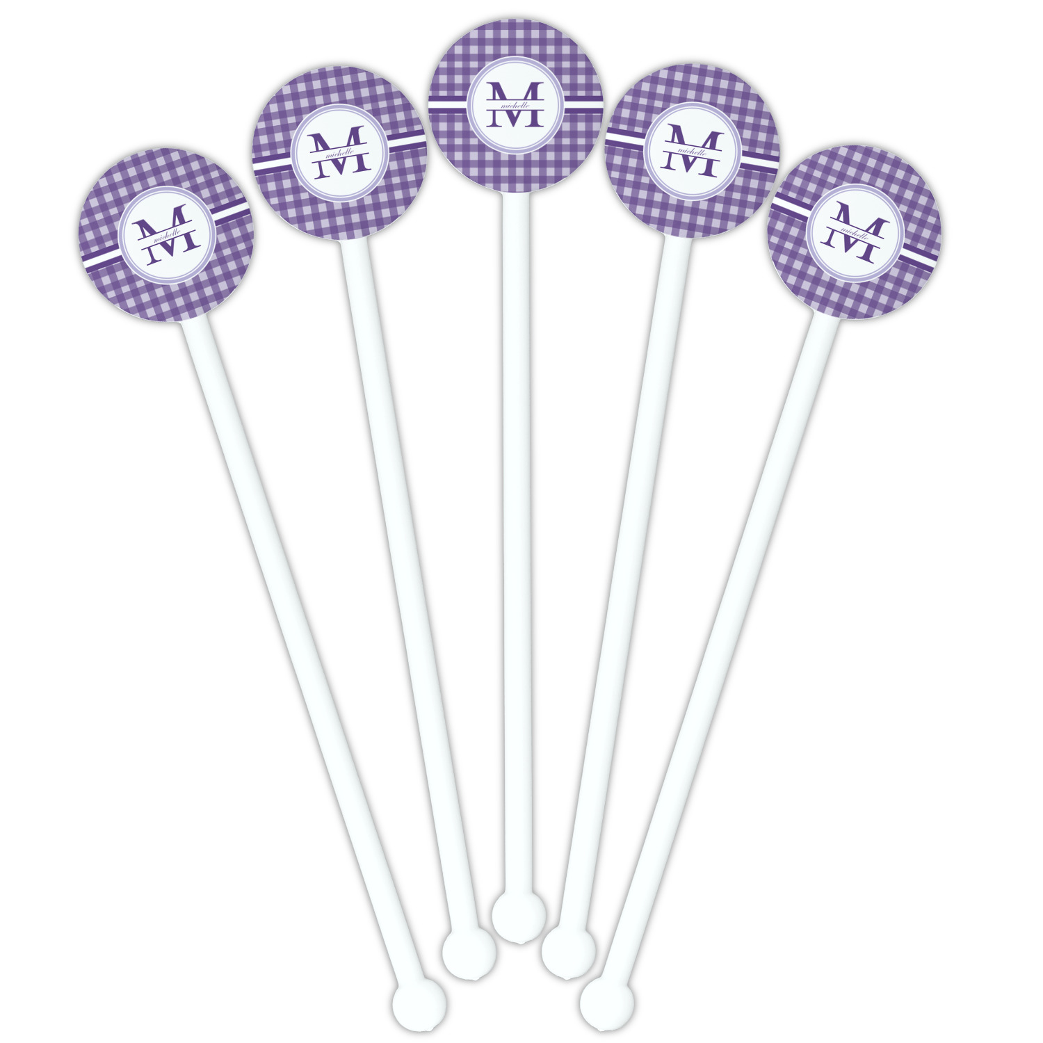 A light and dark wide purple band highlights a classic white circle label that has been exquisitely trimmed in two different shades of purple to showcase your personalization.