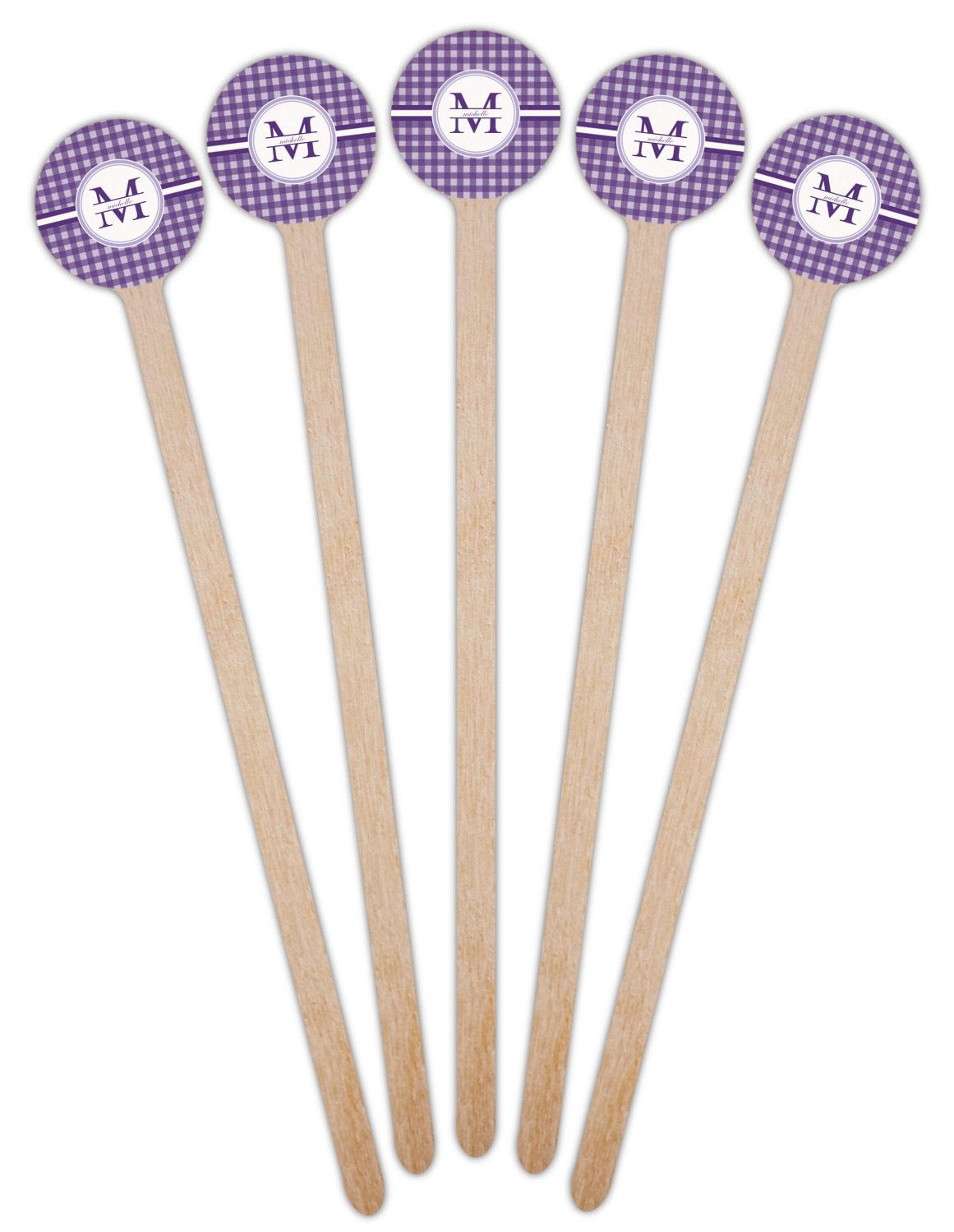 A light and dark wide purple band highlights a classic white circle label that has been exquisitely trimmed in two different shades of purple to showcase your personalization.