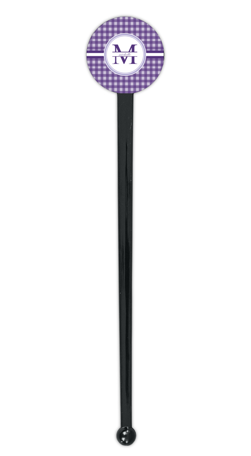 A light and dark wide purple band highlights a classic white circle label that has been exquisitely trimmed in two different shades of purple to showcase your personalization.