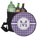 A light and dark wide purple band highlights a classic white circle label that has been exquisitely trimmed in two different shades of purple to showcase your personalization.