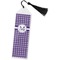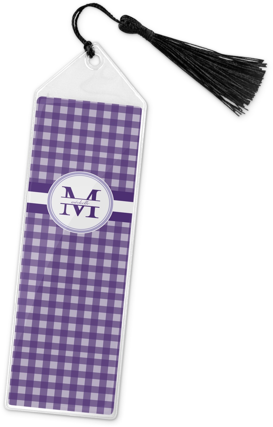 Your personalized bookmark is made of a sturdy, clear vinyl, and is approximately 7.5" x 2.25". We display your personalization on vinyl inserts that are placed on both sides. Accompanying each book marker is a black, fringe tassel that attaches to the reinforced, triangular header.