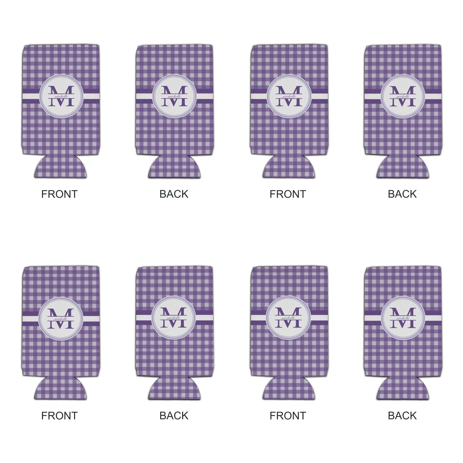 A light and dark wide purple band highlights a classic white circle label that has been exquisitely trimmed in two different shades of purple to showcase your personalization.