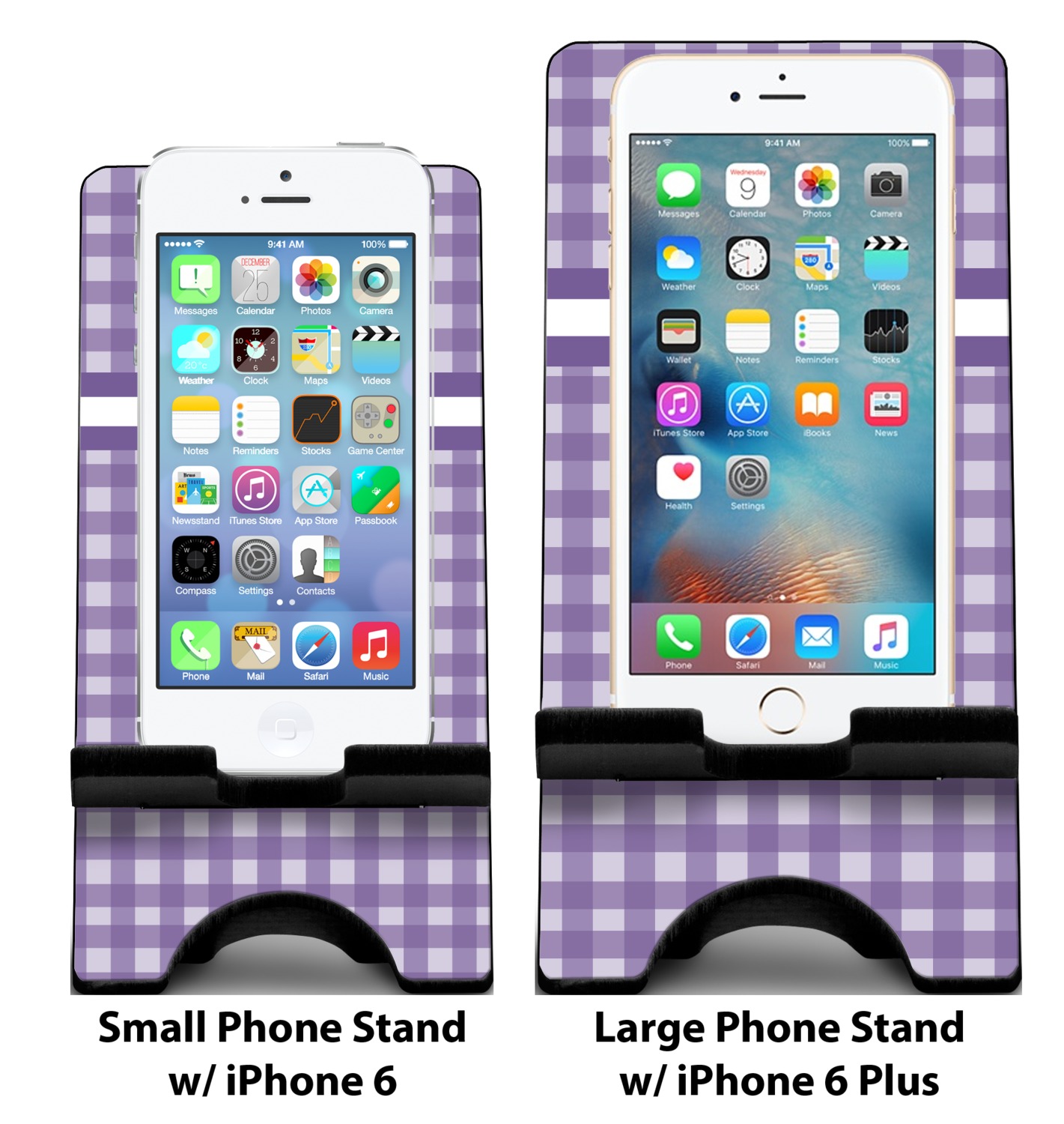 To meet your needs, we offer four variations of this IPhone stand. The backboard of the first version is shaped as a plain, yet sleek rectangle, and is available in two sizes. Our smaller size is approximately 4 by 3.25 by 7 inches, while the larger model is 4 by 3.77 by 8.5 inches. Alongside this model, we also provide you with a more decorative option. The upper part of our second version features a curved edge, for a classy, suave appearance. This phone holder is also sold in two sizes: a smaller version, which is 4 by 3.25 by 7 inches, and our larger model, which is 4 by 3.77 by 8.5 inches. Both models will support large phones, but the larger model is better if you wish to proudly display your personalized design.