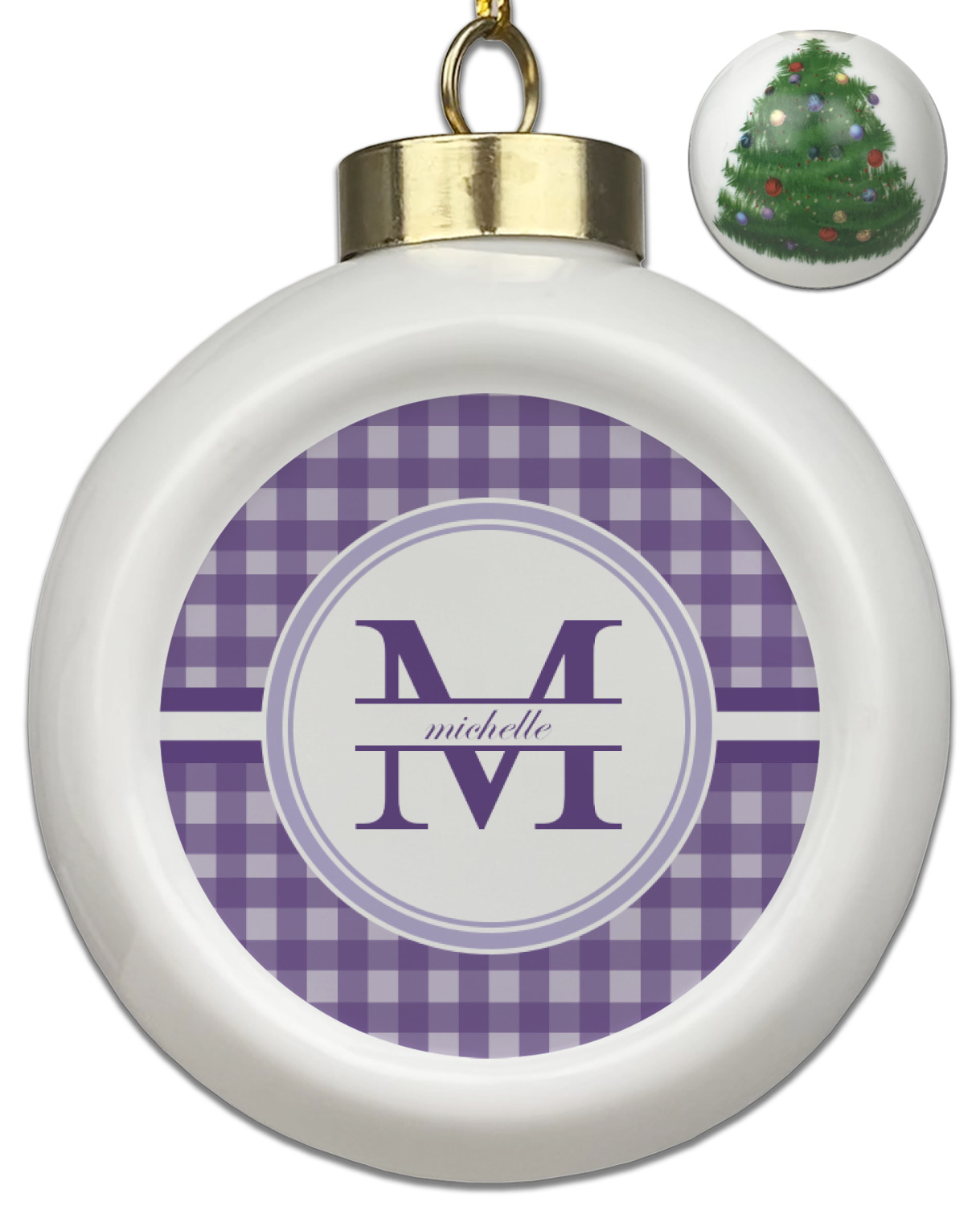 Our Christmas ornaments are a unique ceramic ball shape with a twist as it has a flat face to display your custom design! Select from one of our two design types - Christmas Tree or Poinsettia Garland - to adorn the curved back of your personal design. Each ornament measures 3H x 2.5W x 2D accompanied with a gold string accent for finishing touches to hang on your beautiful Christmas tree!