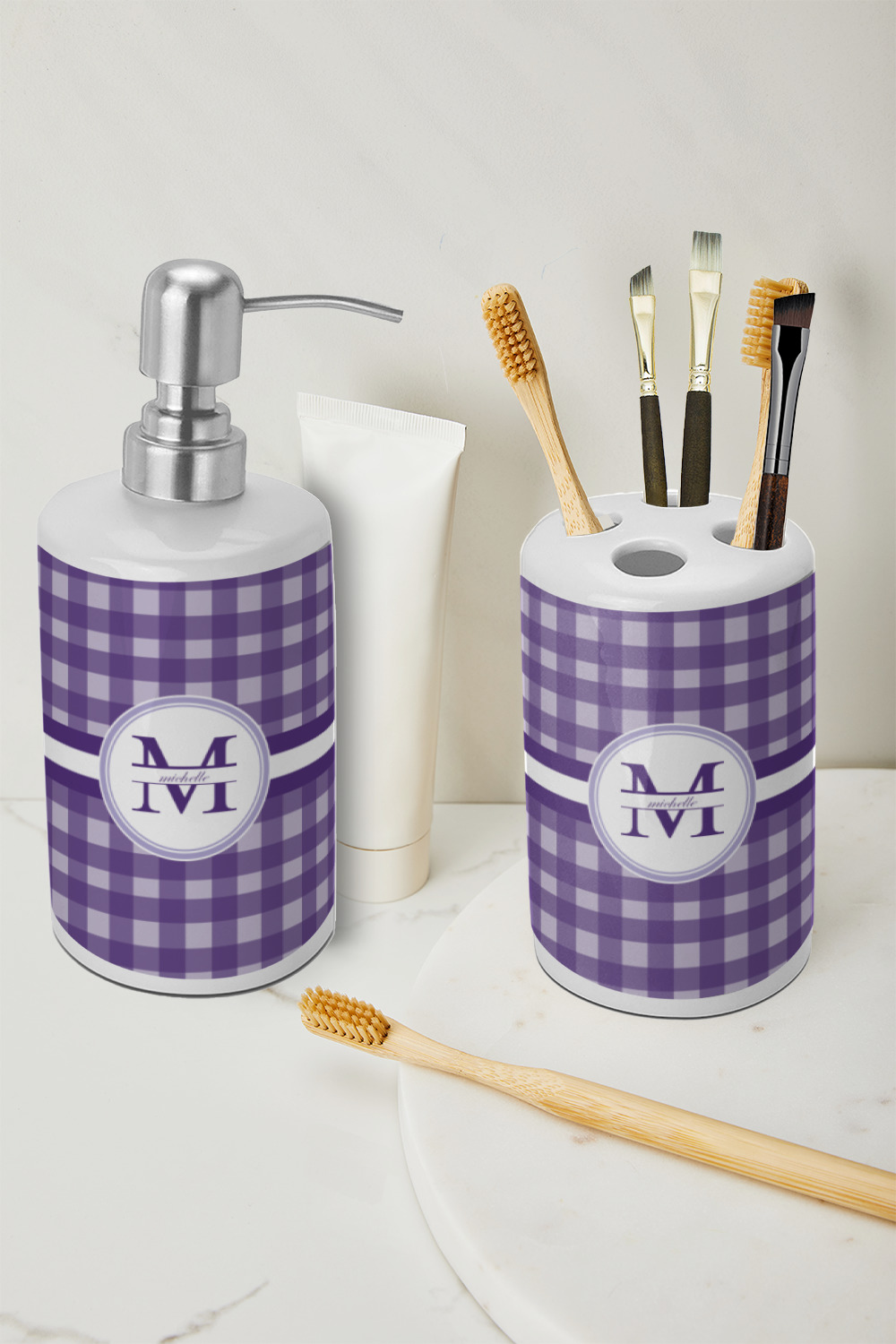 This two piece, ceramic bathroom set will add the perfect splash of color to any bathroom. This set includes one pump dispenser, ideal for soap or lotion, and one toothbrush holder with four holes. Although originally designed for toothbrushes, the holder will also hold make-up brushes, nail files, and other bathroom tools.