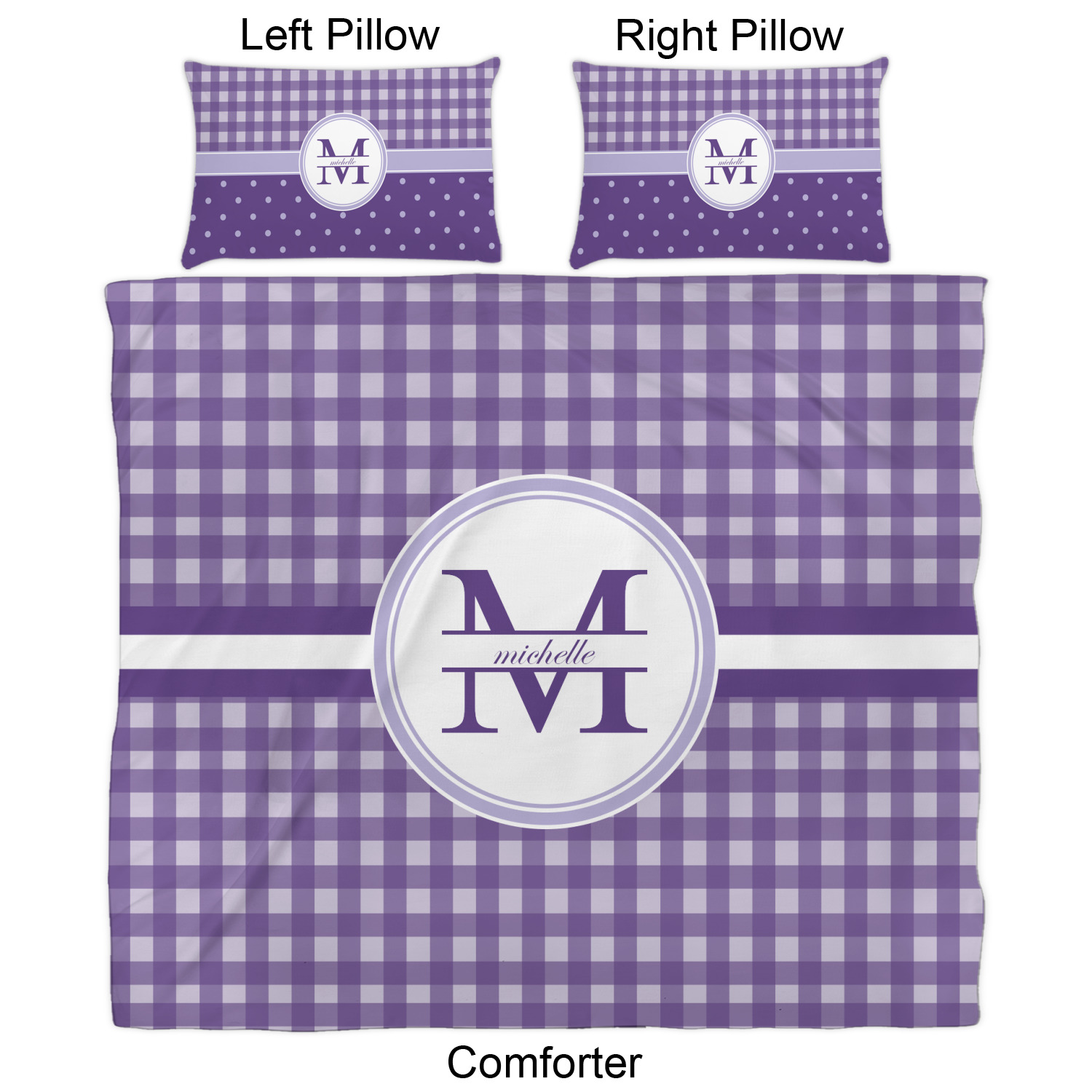 We have hundreds of different design templates for you to choose from Each design can be customized to your exact specifications. Not only can you customize the comforter, but you can also customize each pillow sham e.g. for a queen comforter set you have have Mr & Mrs pillow shams with the last name on comforter.