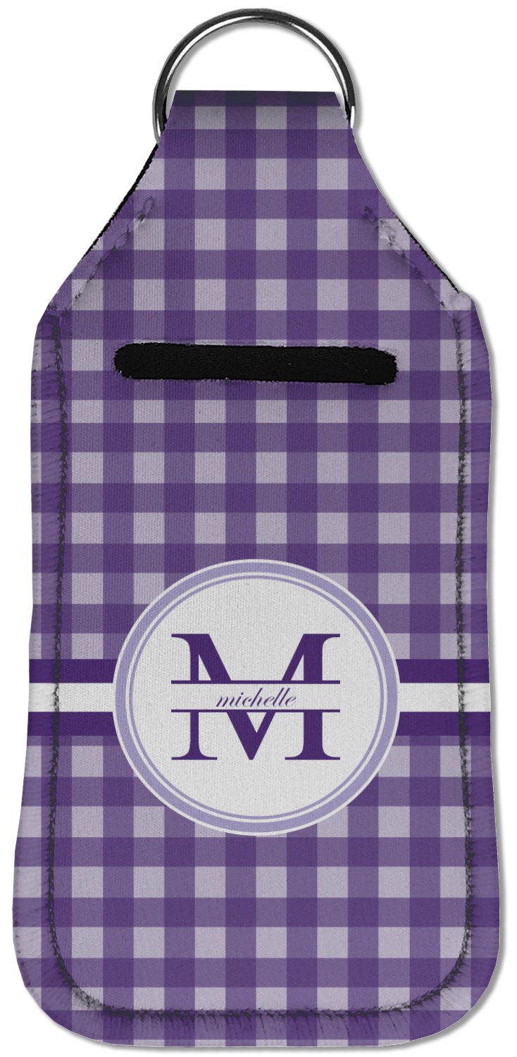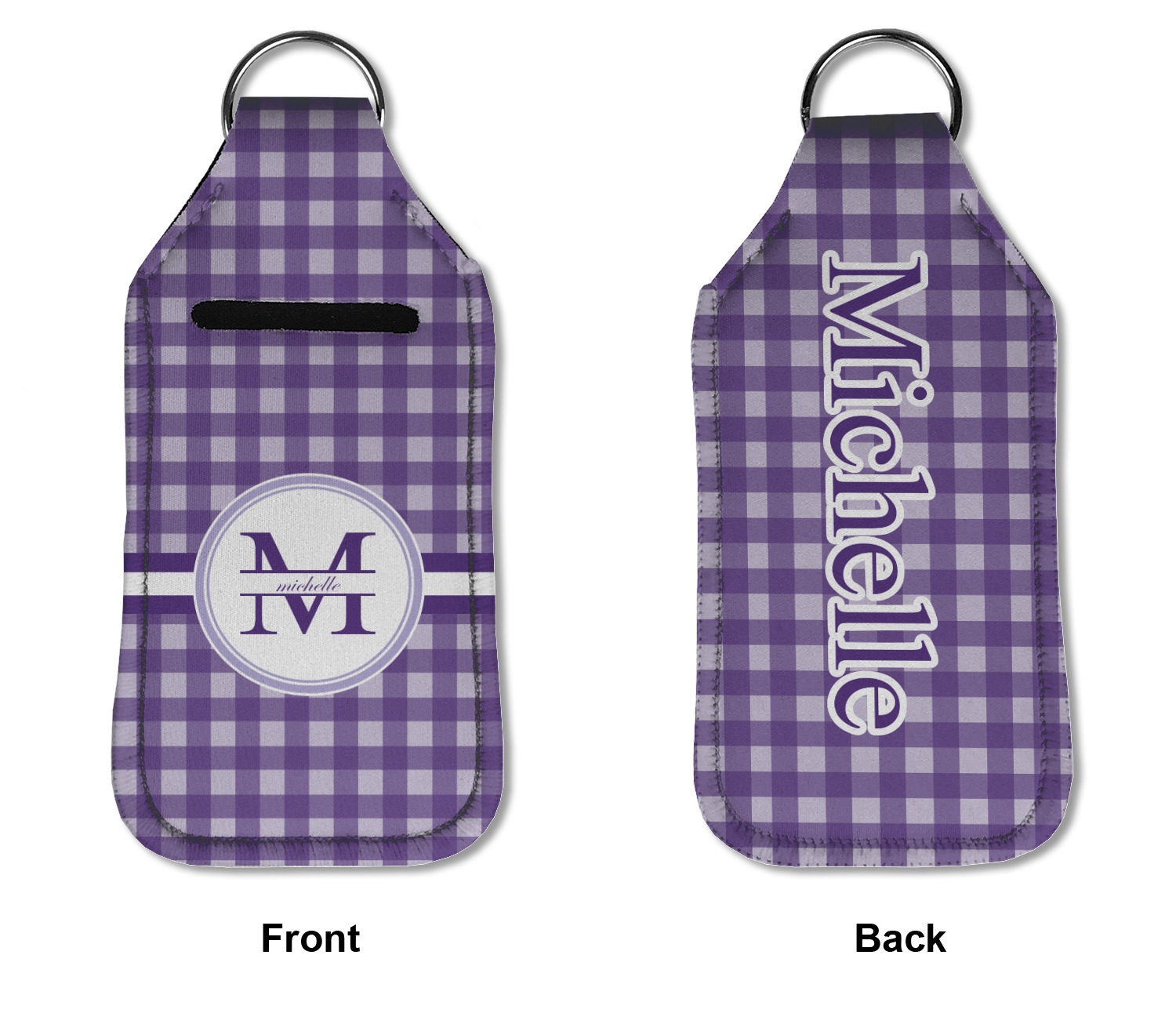 Each hand sanitizer holder comes with its own empty travel-sized, refillable hand sanitizer sure to fit snug in your customized sanitizer case! Our hand sanitizer cases are a durable, yet soft neoprene material sure to last any daily activities or travel agenda. Customize and personalize a hand sanitizer bottle holder with one of our two sizes - small (4.25" x 2.25") or large (5.5" x 2.5"). Each travel sanitizer holder comes with a keyring for attachment on bags, keys, or more!