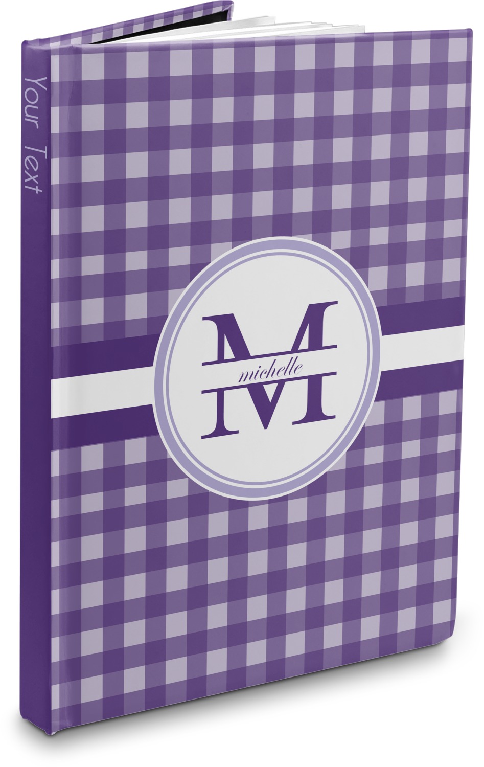 The hardcover of this personalized journal is covered with a smooth, matte, laminate coating. The unique laminate of the covers gives the hardcover notebook a smooth, sleek feel. Filled with 75, lined, white pages, this hardbound notebook has enough room for your reminders and notes. For your convenience, the pages have been perforated, which guarantees an easy tear and removal. Your customization is printed across the entire cover of the book, while the interior is black in color.