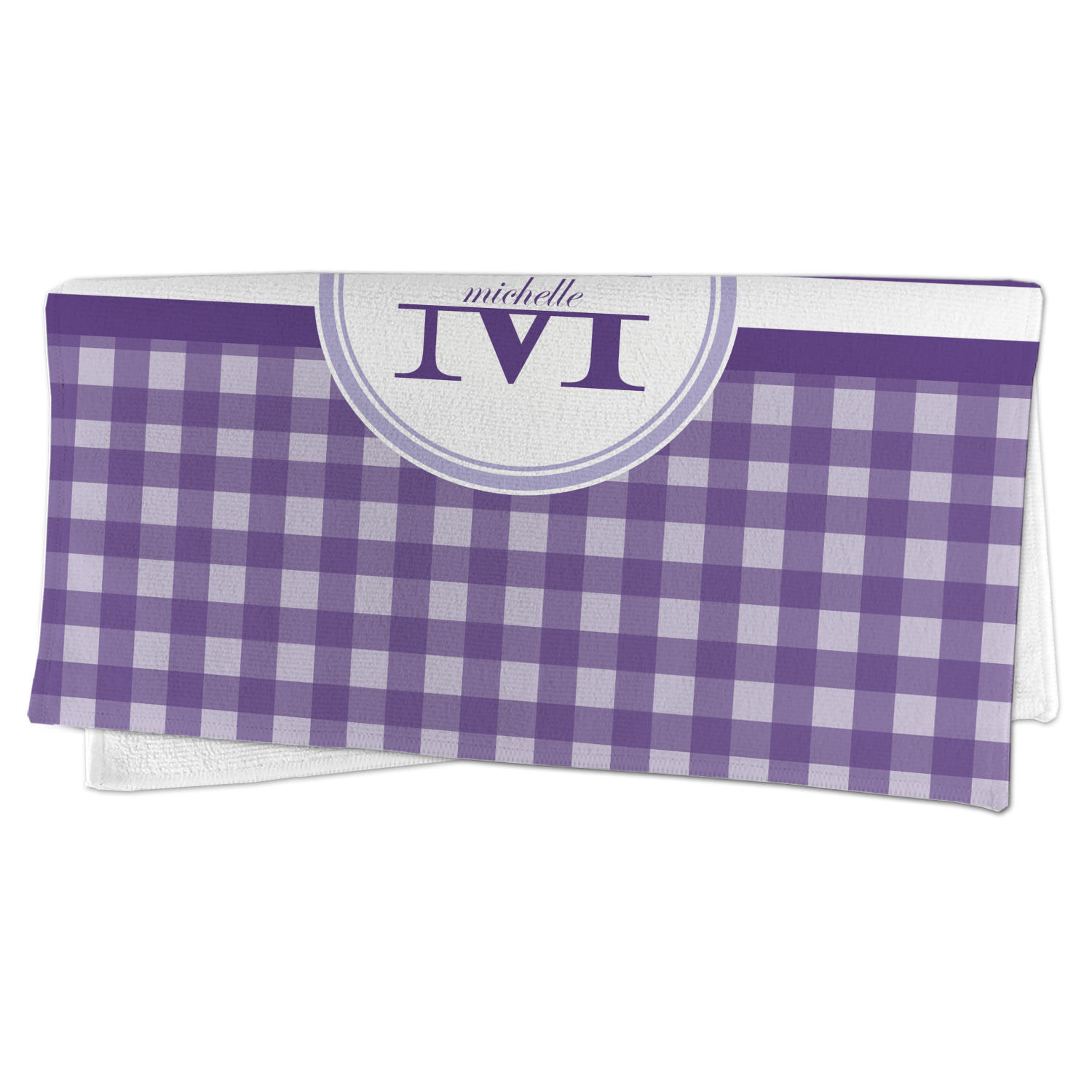 A light and dark wide purple band highlights a classic white circle label that has been exquisitely trimmed in two different shades of purple to showcase your personalization.