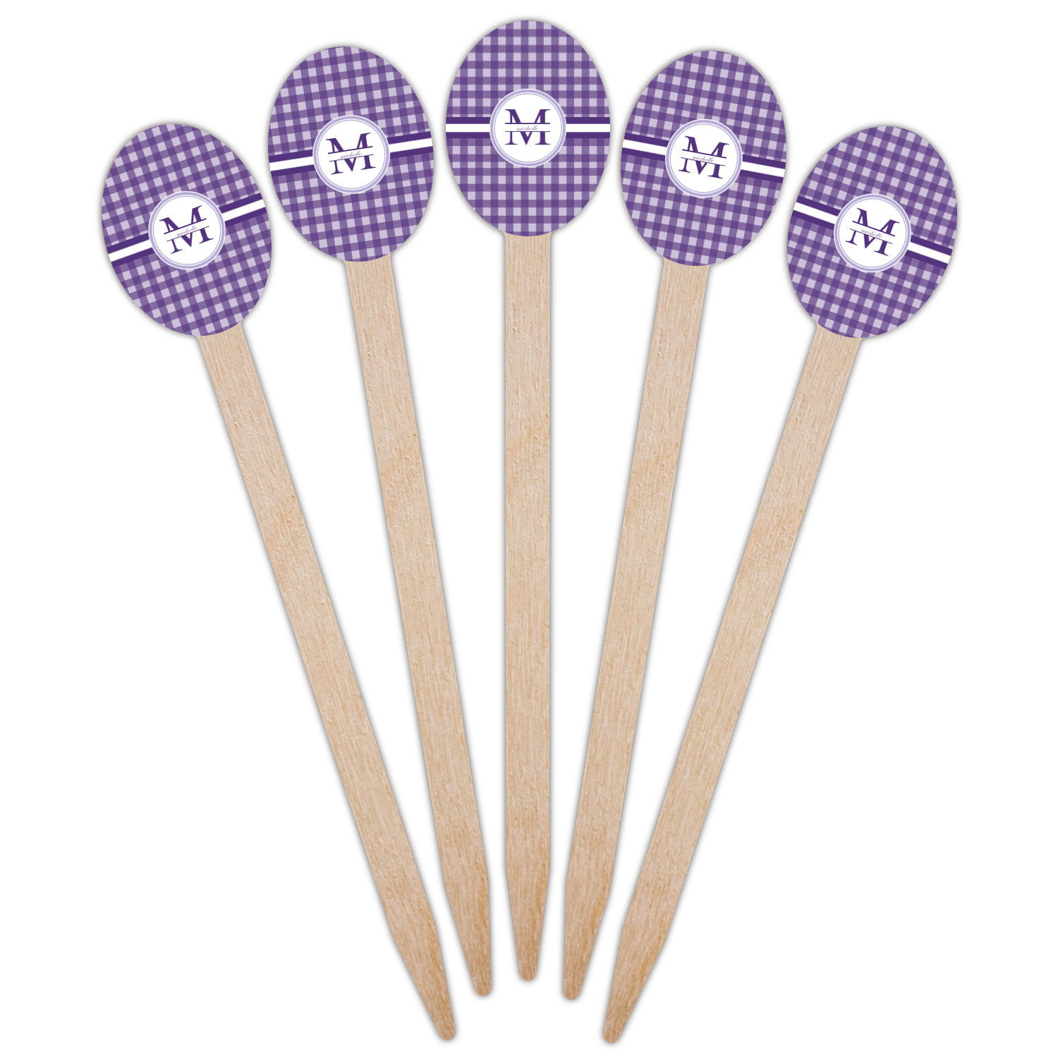 A light and dark wide purple band highlights a classic white circle label that has been exquisitely trimmed in two different shades of purple to showcase your personalization.