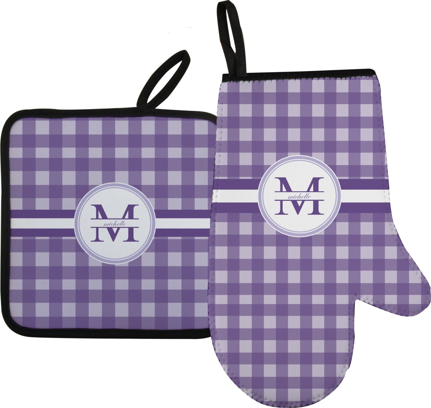 Along with our heat resistant gloves, we also carry personalized pot holders. These pot holders also feature a neoprene front that displays your personalization, and a textured, rubber backing for a sturdy grip. The two materials are connected with a sleek, black trim, and the hot pot holder also includes an attached loop for hanging and storage. You can purchase a kitchen pot holder by itself, or alongside a right or left oven mitt, depending on your needs. The pot holder itself is approximately 8.75 inches by 8.75 inches and 0.25 inches tall.
