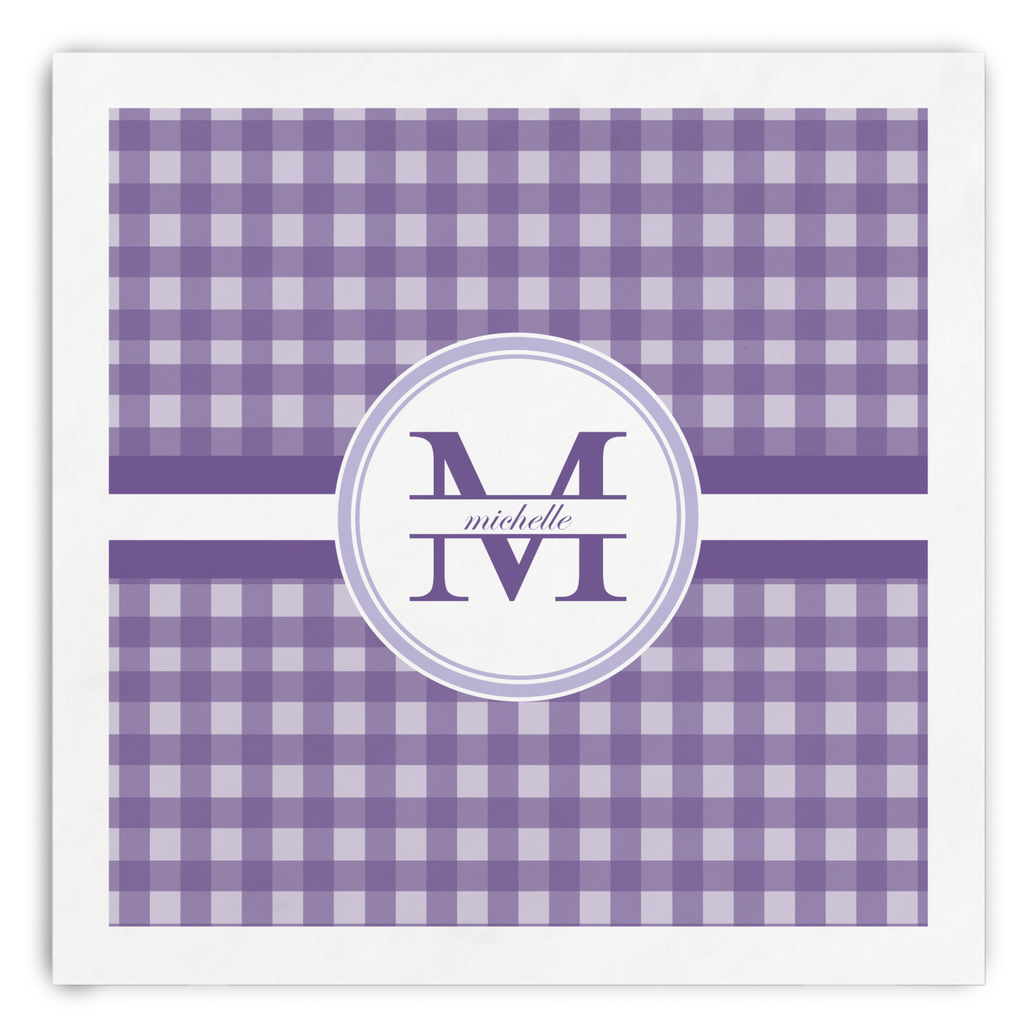 A light and dark wide purple band highlights a classic white circle label that has been exquisitely trimmed in two different shades of purple to showcase your personalization.