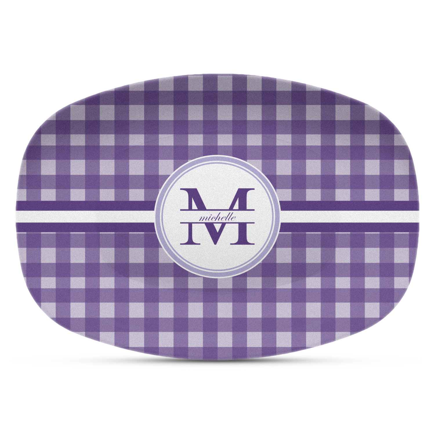 These serving platters are made from a composite, thermo-set, polymer plastic that gives it the versatility, durability, and weight of a melamine platter, without any of the downsides of melamine. These personalized platters, can withstand temperatures up to 250 degrees Fahrenheit, for up to 60 minutes. No harmful chemicals, such as BPA, formaldehyde, and DEHPs were used in the manufacturing of this product. This large serving platter measures at 14" x 10.25", and is spacious enough to hold any of your appetizers or bite-sized desserts. The platter exhibits your personalization across the entirety of its front.