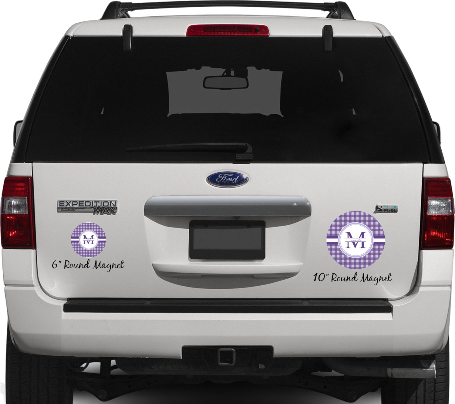 Your personalized car magnets are available for purchase in two shapes and two sizes. We carry round and square editions; each shape can either be 6 by 6 inches, or 10 by 10 inches, depending on your needs. Both versions are 1 millimeter thick, which is considered, within the industry, as the ideal thickness for automobile magnets. The magnetic car decals will adhere to any smooth, metal surface of your cars body, such as the trunk door or a side panel. However, please note that some vehicles are constructed from fiberglass bodies, which prevents the adhesion of anything magnetic. We advise that you test your vehicle before purchasing these magnets.