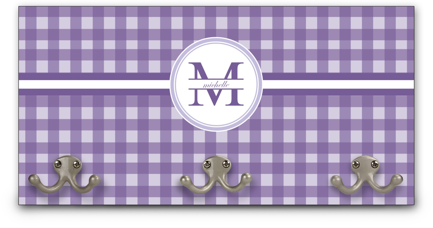 This coat rack is the perfect way to add some personality to your wall or entryway. The board is made of a strong maple that is approximately 16" x 8". The three 2-prong hooks are a sturdy metal that have three screws attaching them to the board. Your design is printed right onto the front of the board while the back and sides are a simple black.