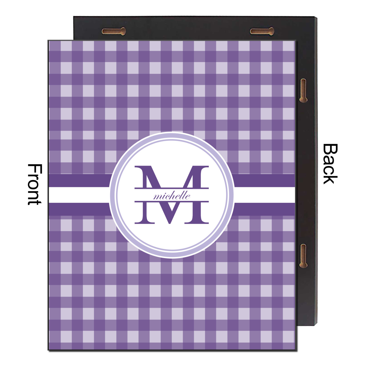 A light and dark wide purple band highlights a classic white circle label that has been exquisitely trimmed in two different shades of purple to showcase your personalization.