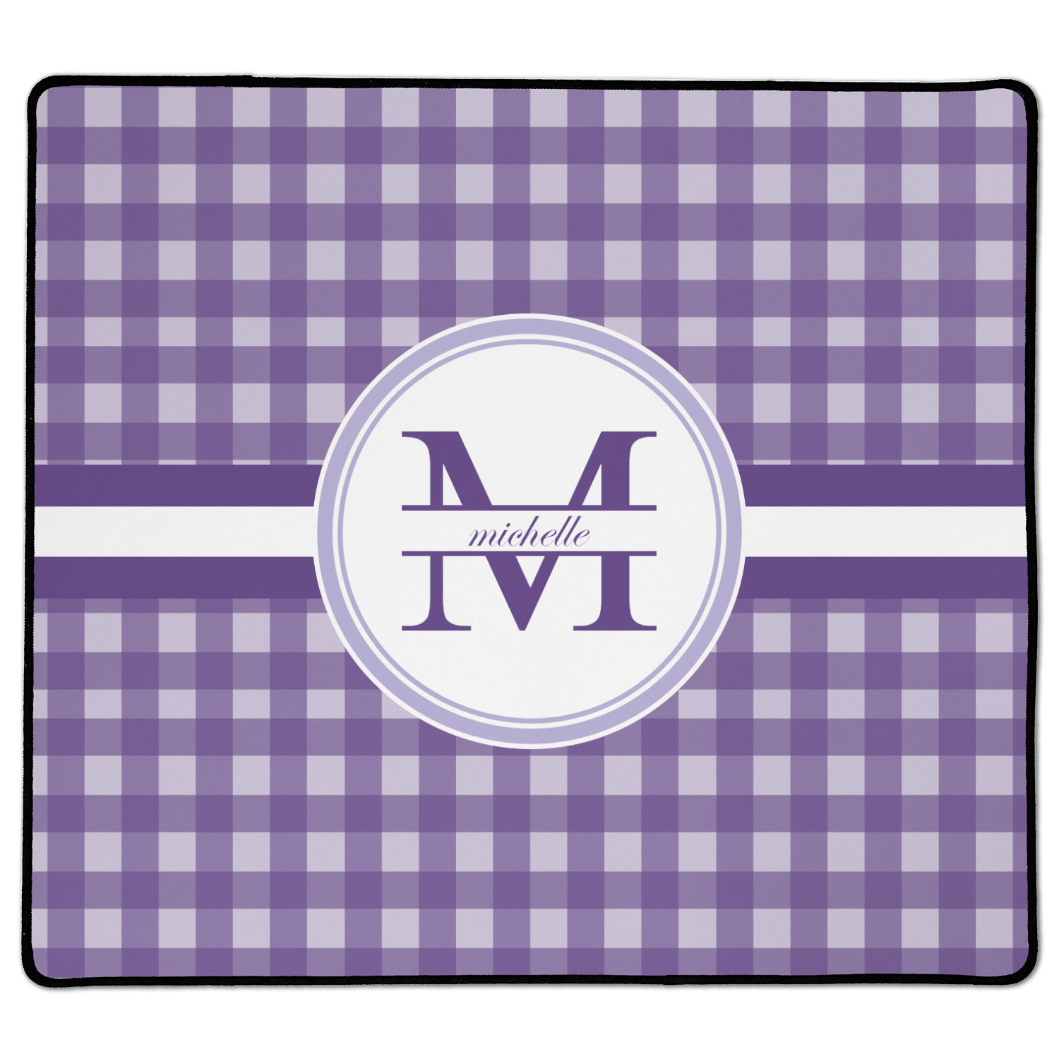 A light and dark wide purple band highlights a classic white circle label that has been exquisitely trimmed in two different shades of purple to showcase your personalization.
