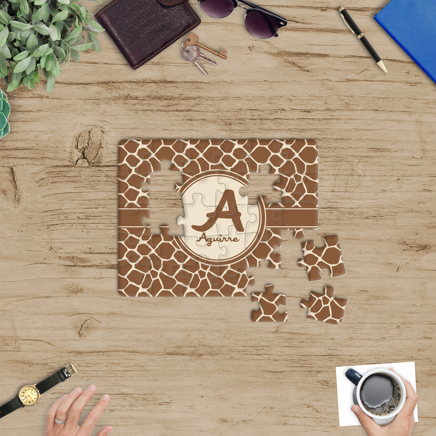 You can also upload your logo or art that you or your kids drew. To create more challenging jigsaw puzzles, you can create a pattern from with your logo or artwork. You can also add other elements such as text or personalization.