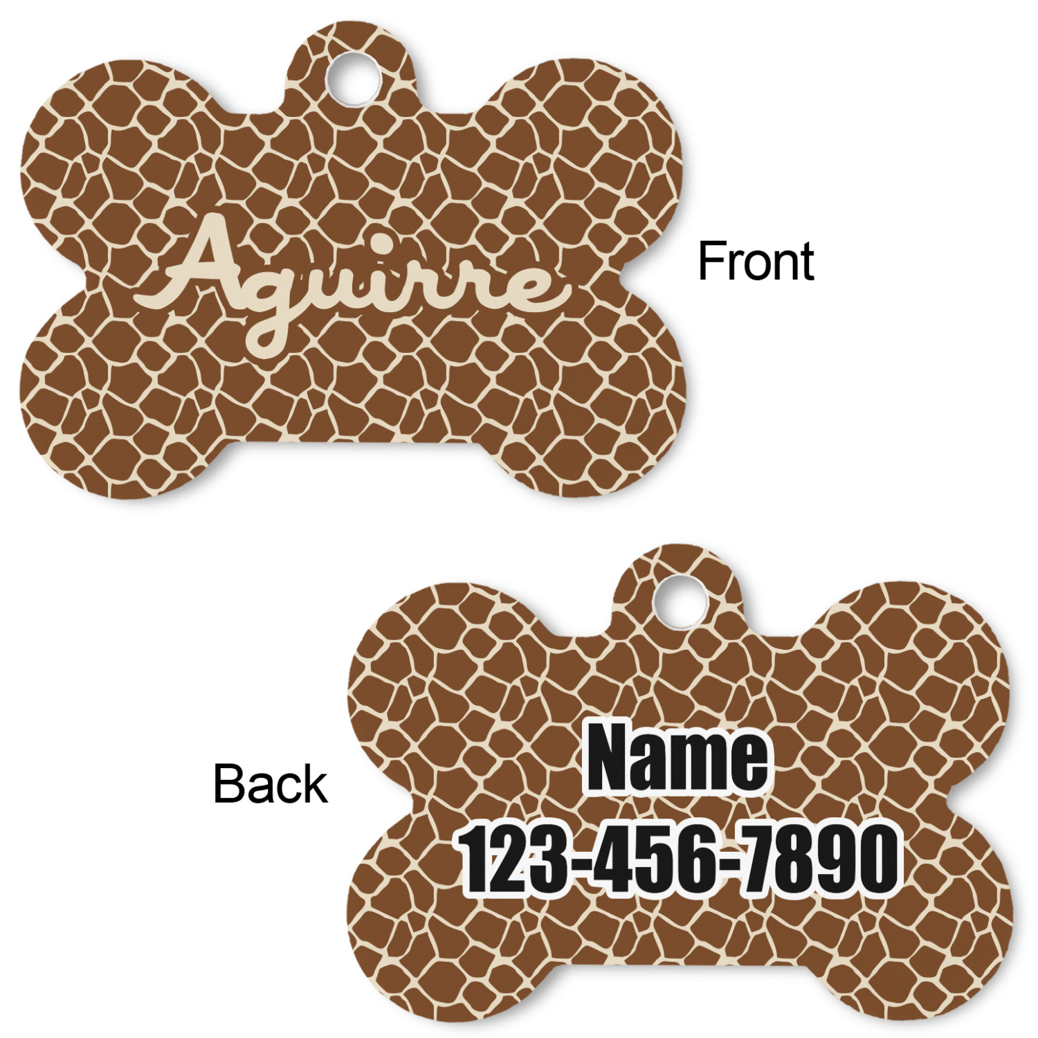 Our default design templates print your dog's personalization on the front and your contact information on the back; however everything is customizable, so you customize the patterns, the colors, the personalization, the contact information etc.