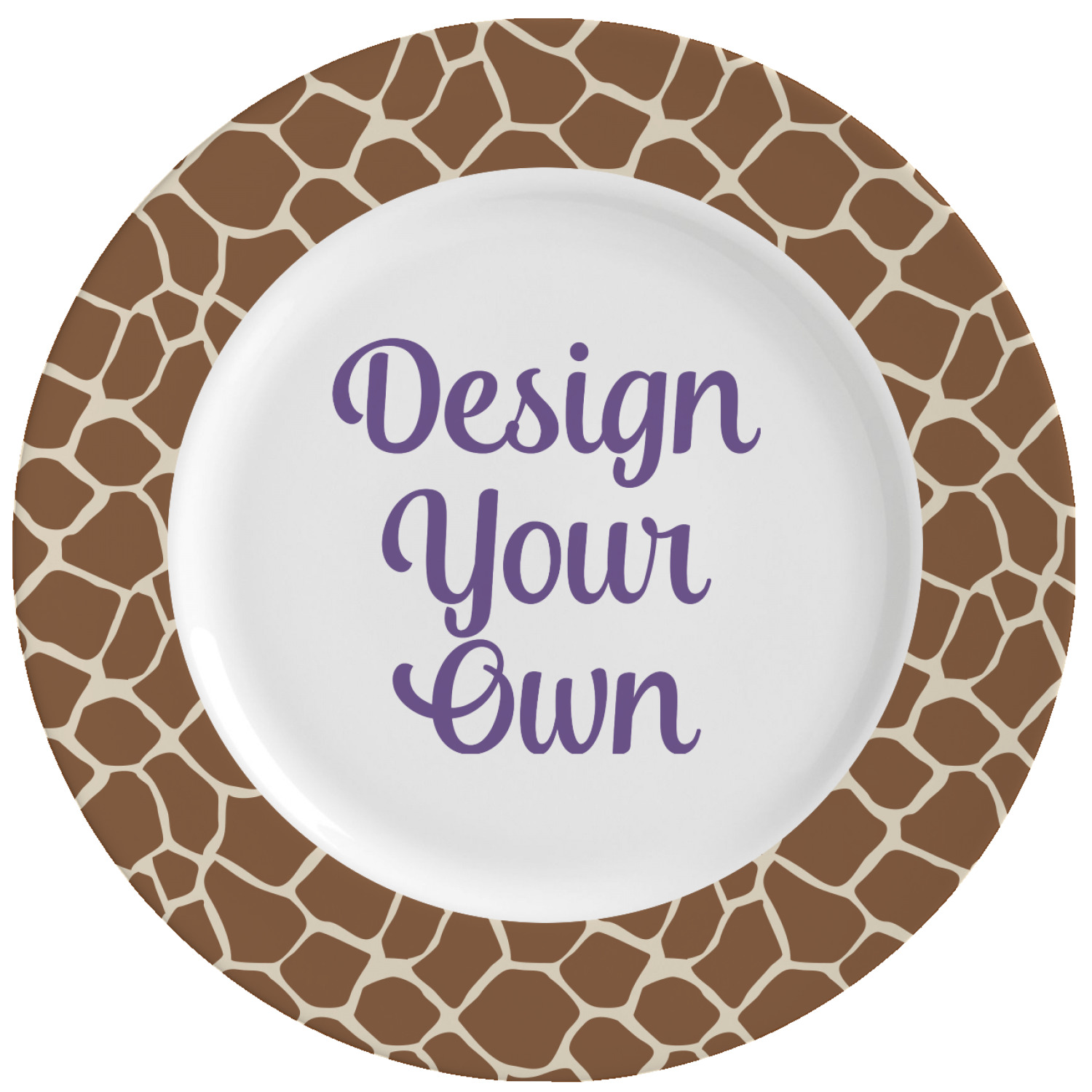With this custom dinner plate, your have the option of personalizing the rim with an attractive pattern, and then displaying a name, graphic, or text in the center of the plate, against a white background. The exterior of this plate is also the same classic, white color. A glaze coats your plate, making your vividly colored design seem even more vibrant.